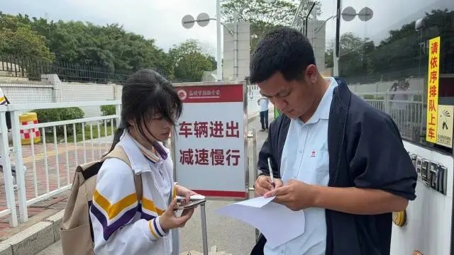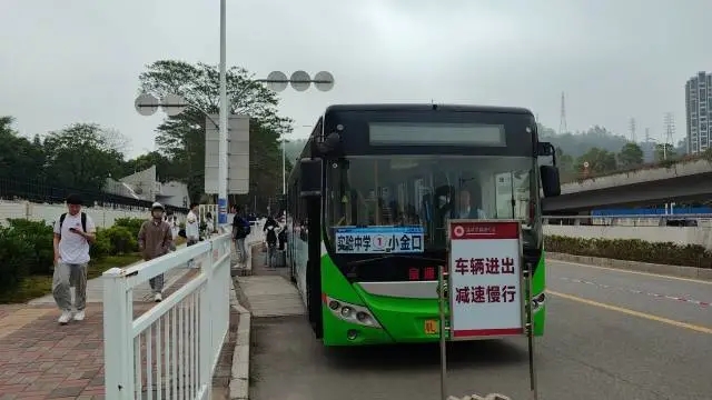 周六上午11時,是惠州市實驗中學的放學時間。校門口不遠處,校園定制公交早已到位,定制公交的運營時間與學校放學時間同步銜接,學生出校門即可乘車。定制公交通過線上購買車票,上下學只搭乘本校學生,車輛準時準點到達,家長通過手機就能查看車輛位置,定時定點在公交站點接送即可。
