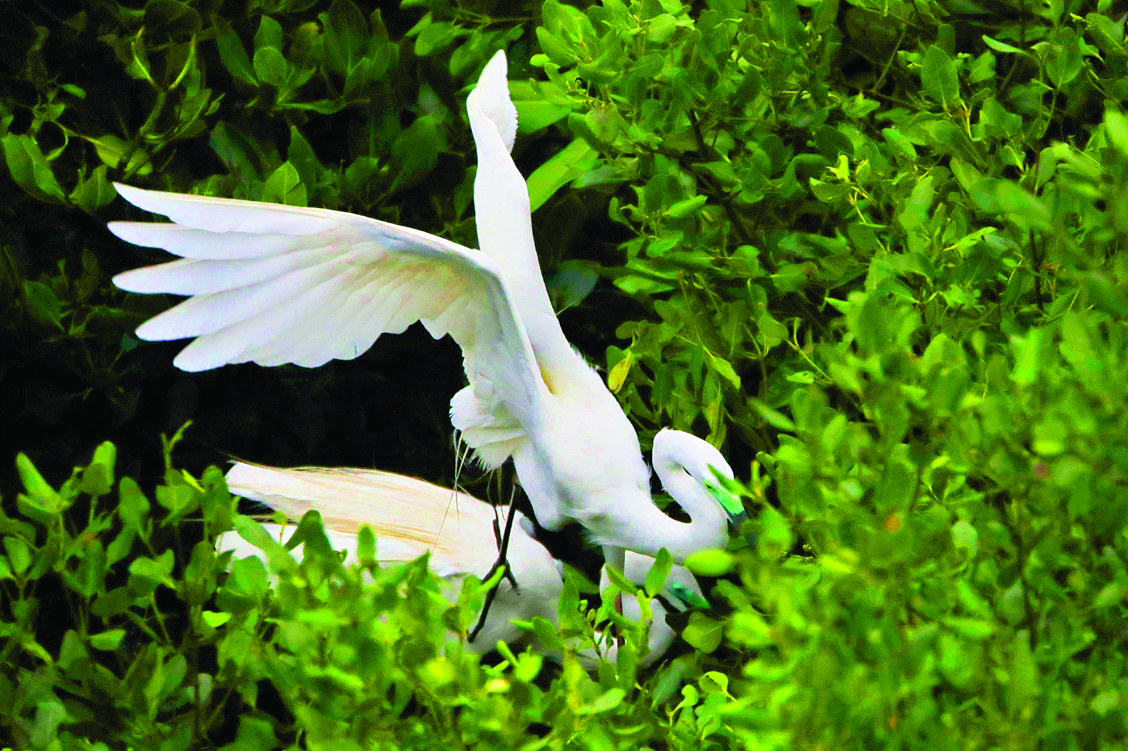 春暖花開,萬(wàn)物復(fù)蘇。棲息在惠東縣黃埠鎮(zhèn)白沙村紅樹林濕地公園里的白鷺又進(jìn)入了繁殖季節(jié)。郁郁蔥蔥的紅樹林成了鳥兒們舒適的棲息地,筑巢、交配、產(chǎn)蛋、孵化……它們不誤天時(shí),繁衍生息。