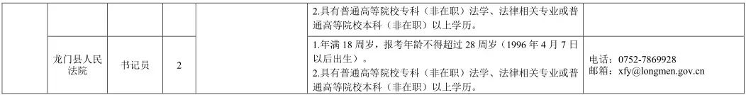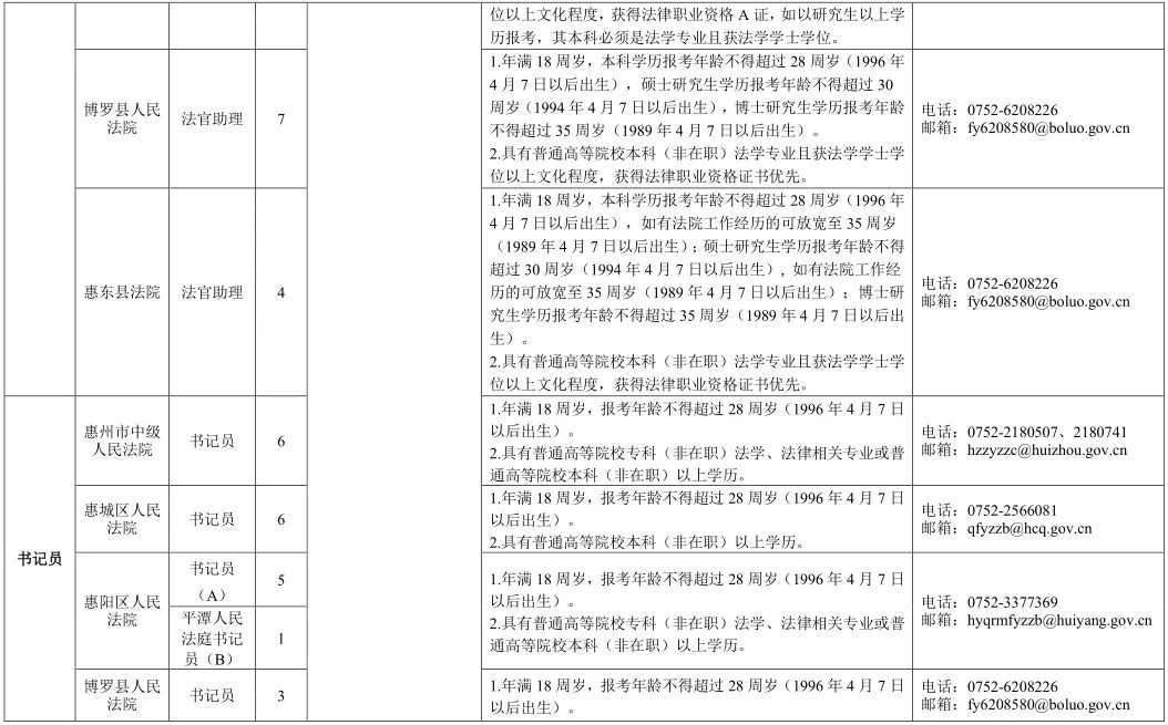 。ǘ⿻(shū)記員23名(含市法院6名、惠城法院6名、惠陽(yáng)法院6名、博羅法院3名、龍門(mén)法院2名)。