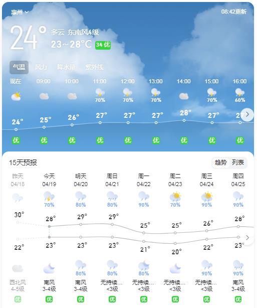 惠州日報訊 (記者劉建威)據@廣東天氣消息,4月18日白天,一條強颮線(強對流雨帶)南北跨度超600千米,幾乎整個廣東都被強對流天氣肆虐一遍。記者從市氣象臺獲悉,受強雷雨云系影響,當天白天我市出現中到強雷雨局部暴雨,局地伴有8~10級雷暴大風,全市最大陣風出現在博羅羅浮山27.8米/秒(10級),最大雨量出現在惠陽沙田65.6毫米;市區(qū)最大陣風出現在惠城龍豐街道19.2米/秒(8級),最大雨量出現在惠城河南岸街道65毫米。