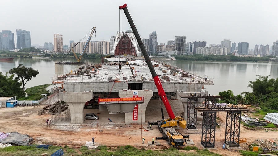 4月18日上午,由中鐵廣州局承建的鵝城大橋引橋匝道橋鋼梁開始架設,標志著引橋匝道橋正式進入鋼梁施工階段。