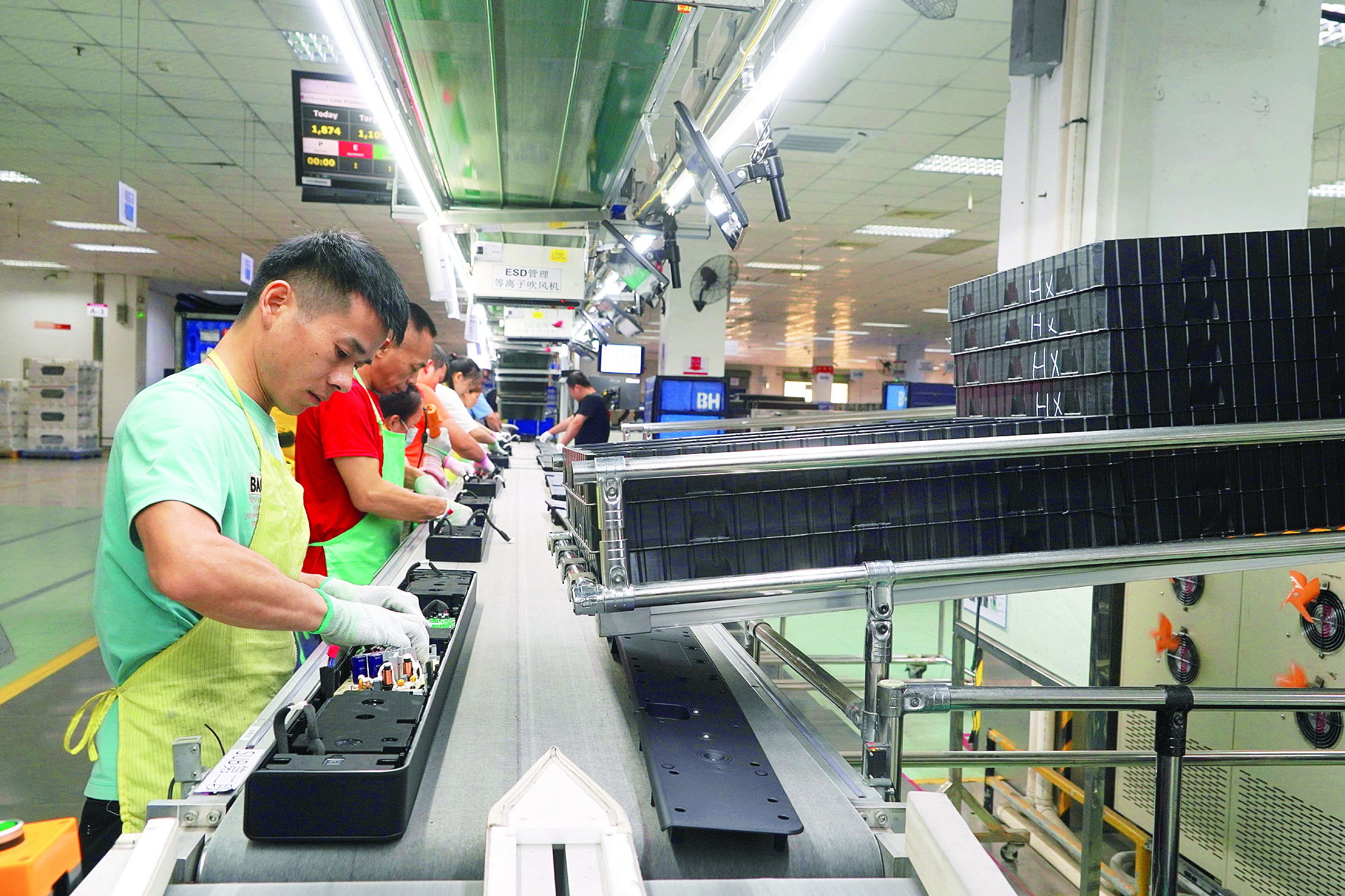在LG電子生產(chǎn)車間,一條sound bar(條形音響)生產(chǎn)線引起了記者的注意。