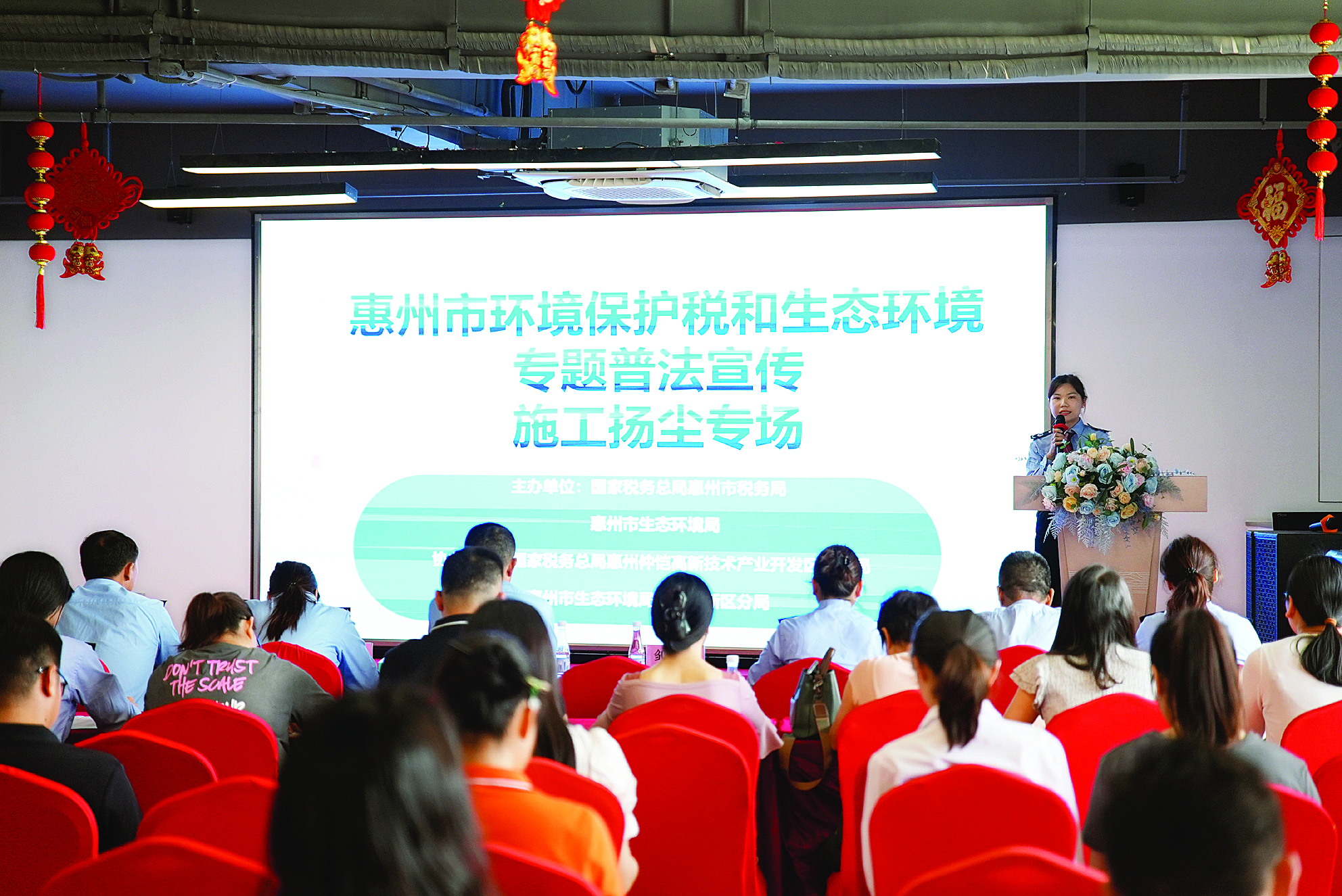生態(tài)環(huán)境部近日公布的2024年2月全國空氣環(huán)境質(zhì)量狀況顯示,惠州在168個(gè)重點(diǎn)城市中位居第三名。“惠州藍(lán)”再次享譽(yù)全國。4月16~18日,正值第33個(gè)全國稅收宣傳月期間,國家稅務(wù)總局惠州市稅務(wù)局(以下簡稱“惠州市稅務(wù)局”)、惠州市生態(tài)環(huán)境局聯(lián)合舉辦環(huán)境保護(hù)稅和生態(tài)環(huán)境專題宣講活動(dòng),先后走進(jìn)仲愷、博羅、大亞灣三個(gè)縣(區(qū)),針對施工揚(yáng)塵、污水處理、大氣污染等日常涉及環(huán)境保護(hù)稅和環(huán)保領(lǐng)域的難點(diǎn)、堵點(diǎn)展開專業(yè)講解。