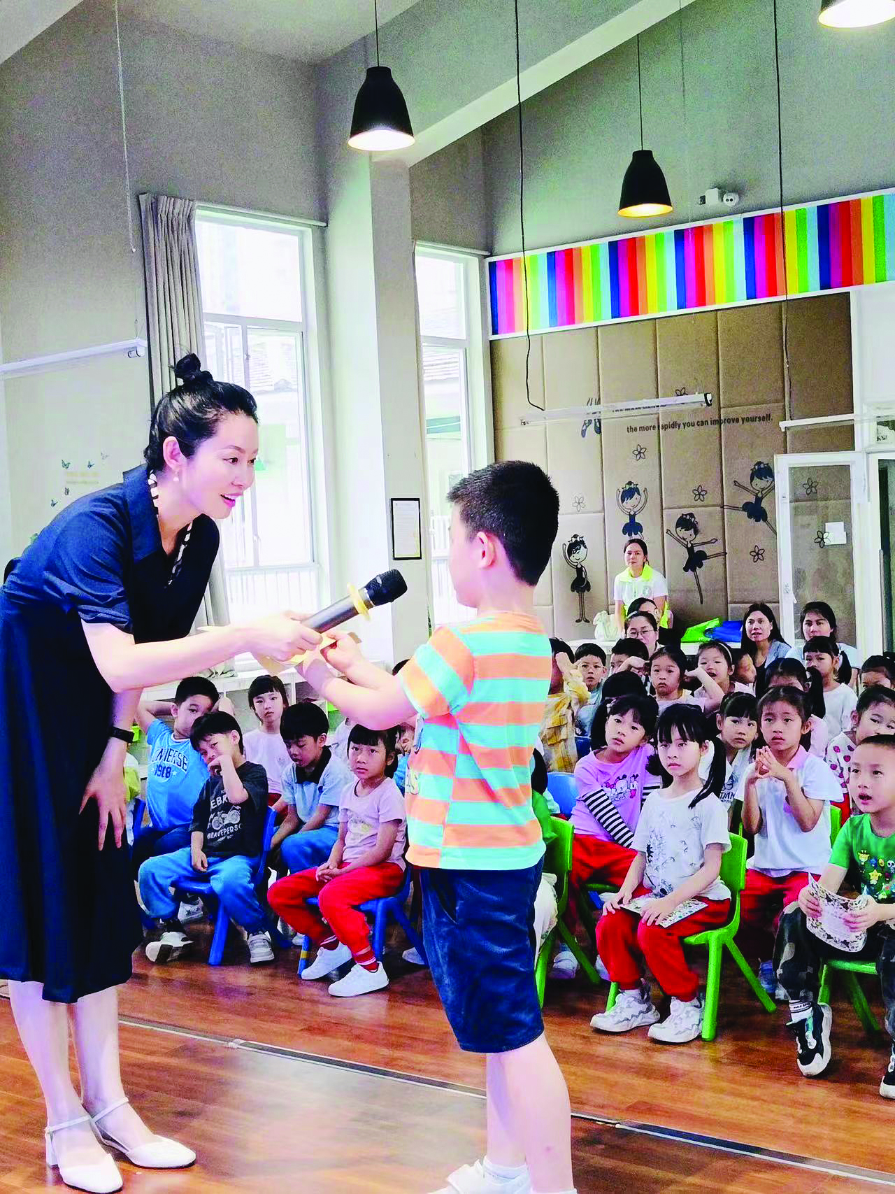 為進(jìn)一步引導(dǎo)少年兒童增強(qiáng)文明意識(shí),養(yǎng)成良好的文明行為習(xí)慣,并通過一名兒童帶動(dòng)一個(gè)家庭,推動(dòng)社會(huì)文明程度有效提升,胡楓從禮儀的涵義出發(fā),分別講述了儀容禮儀、服飾禮儀、稱呼禮儀、致意禮儀、接送禮儀、餐桌禮儀及校園禮儀,引導(dǎo)孩子們學(xué)禮儀、知禮儀、行禮儀,培育和踐行社會(huì)主義核心價(jià)值觀;顒(dòng)穿插現(xiàn)場(chǎng)提問、現(xiàn)場(chǎng)演示教學(xué)環(huán)節(jié),風(fēng)趣幽默、引人入勝,現(xiàn)場(chǎng)掌聲不斷。小朋友們還積極上臺(tái)展示所學(xué)禮儀知識(shí),收獲了豐富的獎(jiǎng)品。