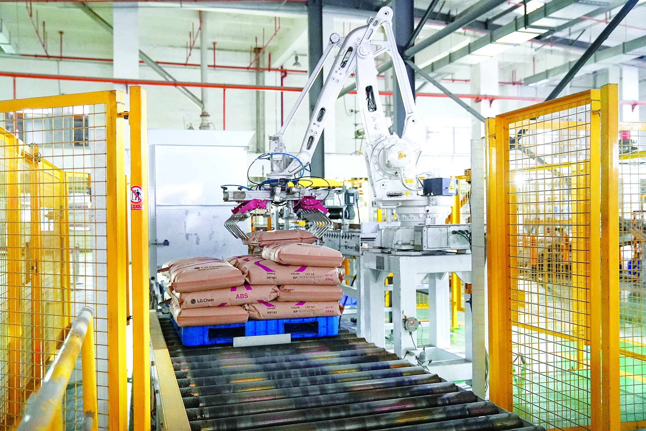 在位于惠州大亞灣石化區(qū)的樂金化學(xué)(惠州)化工有限公司(以下簡(jiǎn)稱“樂金化學(xué)”)生產(chǎn)車間里,機(jī)械臂等設(shè)施24小時(shí)不停運(yùn)作,源源不斷地產(chǎn)出各類ABS樹脂產(chǎn)品,銷往小米、華為、美的、普聯(lián)等企業(yè),用于生產(chǎn)家用電器、電子電氣、汽車、玩具、建材等產(chǎn)品。