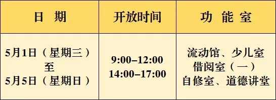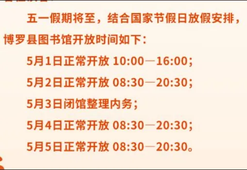 根據(jù)《國(guó)務(wù)院辦公廳關(guān)于2024年部分節(jié)假日安排的通知》文件精神,并結(jié)合圖書館實(shí)際情況,現(xiàn)將2024年勞動(dòng)節(jié)假期開放時(shí)間及功能室安排如下: