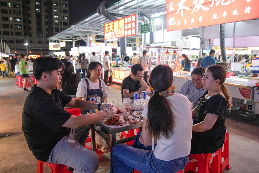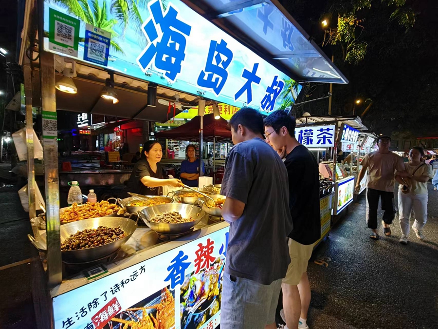 夜幕降臨,許多市民到市區(qū)水口人民路夜市消費(fèi)。