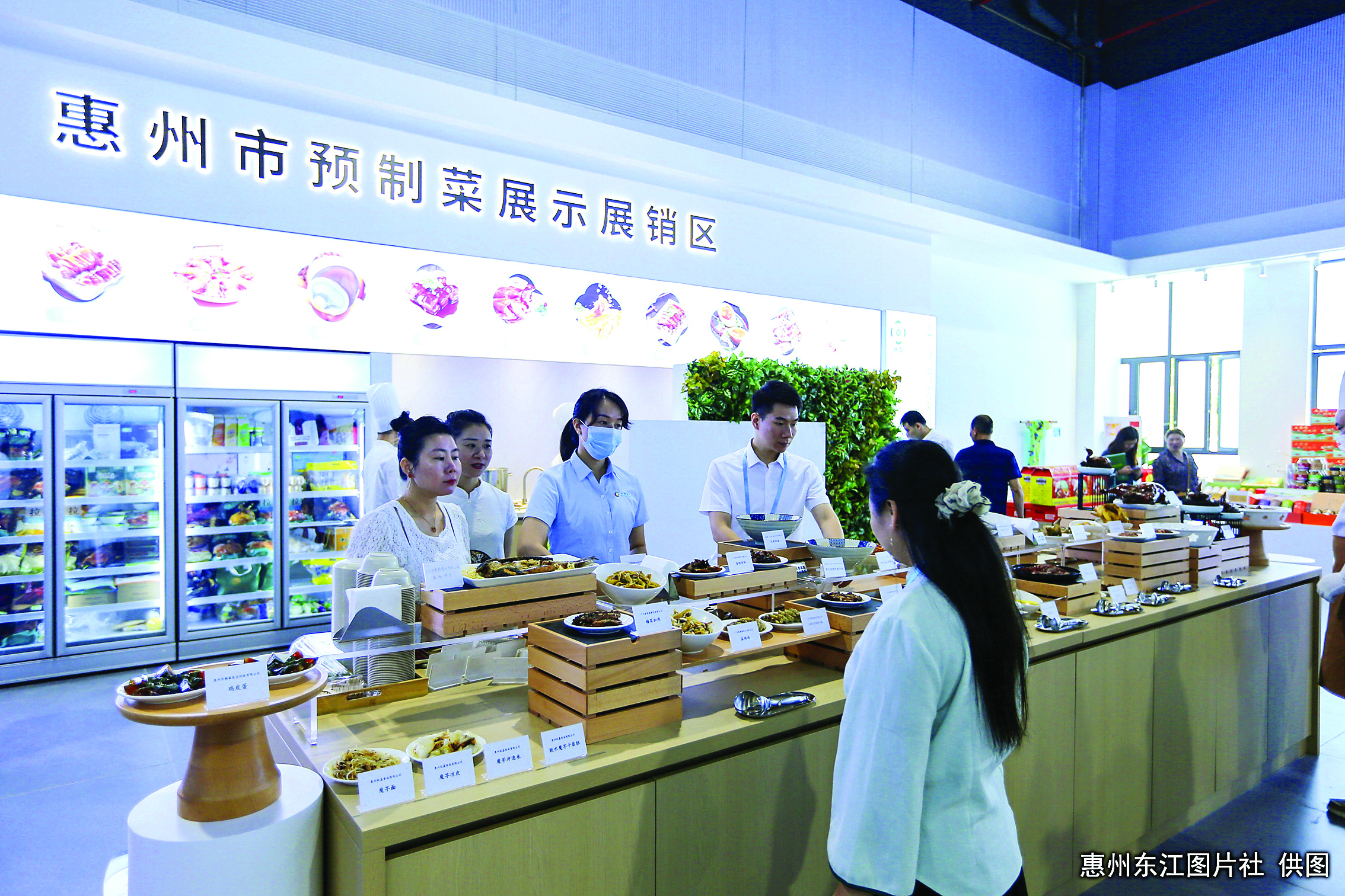 惠州市預(yù)制菜展銷區(qū)香氣四溢。 惠州日?qǐng)?bào)記者李松權(quán) 張藝明 黃鑫威 羅劍業(yè) 游璇鈺 惠州東江圖片社