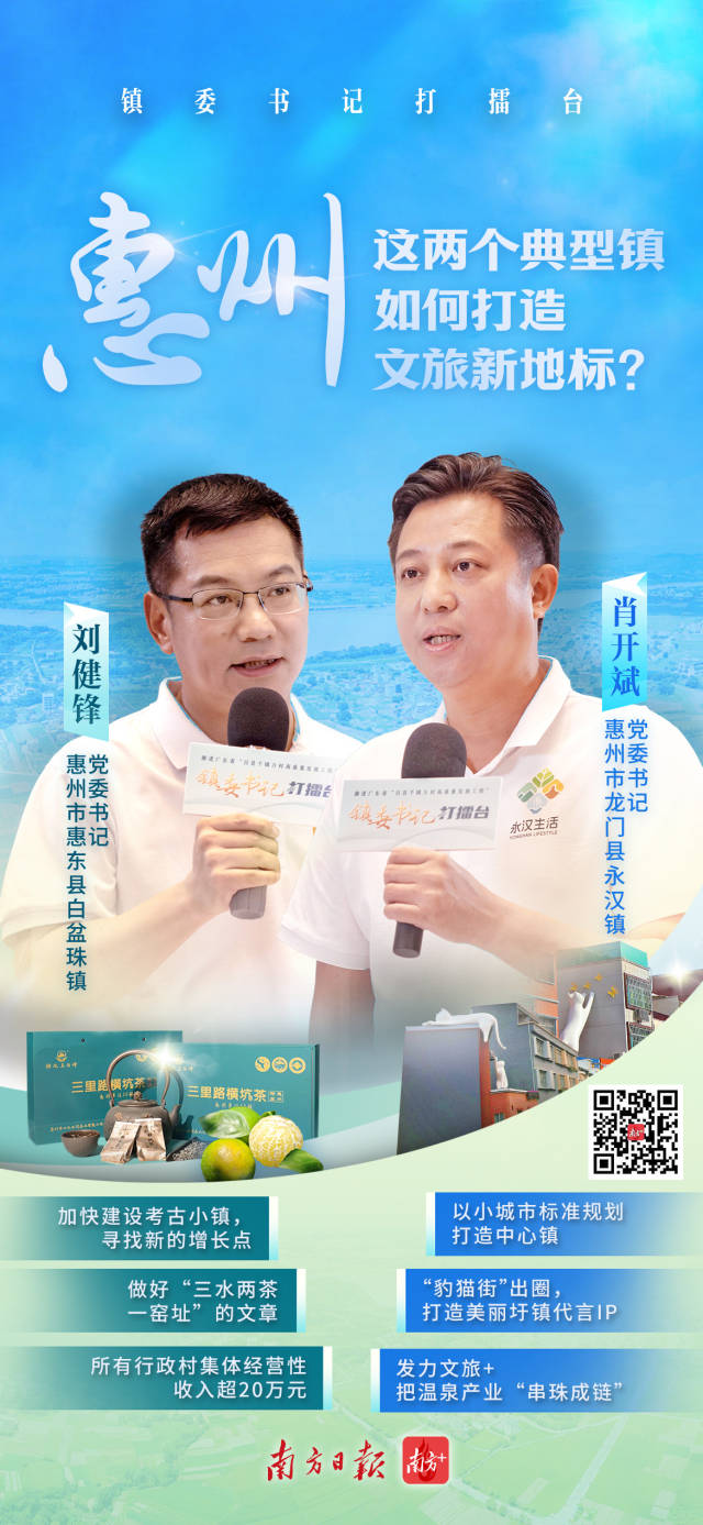 龍門縣永漢鎮(zhèn)和惠東縣白盆珠鎮(zhèn),都入選了省“百千萬工程”首批典型鎮(zhèn),并在日前公布的2023年度省實施“百千萬工程”考核評價結(jié)果中被評為優(yōu)秀。兩個鎮(zhèn)旅游資源豐富,康養(yǎng)旅游產(chǎn)業(yè)發(fā)達,對于如何培育好典型鎮(zhèn),兩個鎮(zhèn)都有各自的破題妙招,在“鎮(zhèn)委書記打擂臺”節(jié)目中,兩位“百千萬工程”的“一線施工隊長”一一分享。