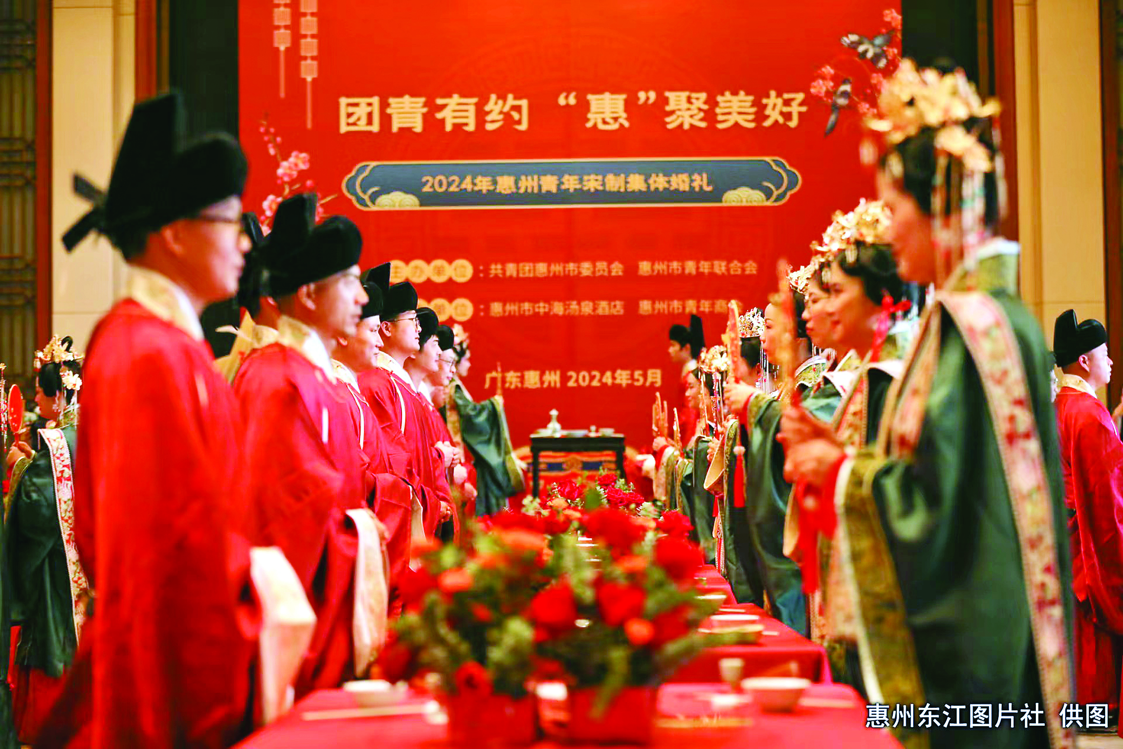 “團(tuán)青有約 ‘惠’聚美好”!5月18日上午,2024年惠州青年宋制集體婚禮在中海湯泉酒店舉行,50對新人身披紅妝、執(zhí)手相伴,體驗(yàn)浪漫唯美的宋制婚禮儀式;顒(dòng)由團(tuán)市委、市青年聯(lián)合會(huì)主辦;主會(huì)場活動(dòng)由惠州報(bào)業(yè)傳媒集團(tuán)超網(wǎng)新媒體有限公司承辦。