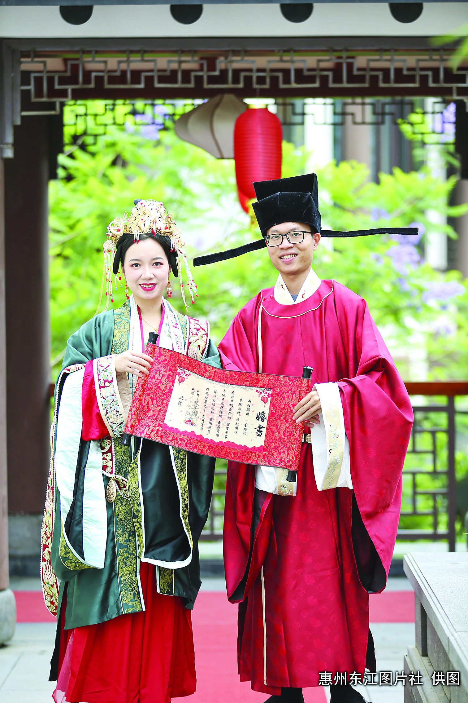 本次集體婚禮分市級(jí)主會(huì)場和七個(gè)縣(區(qū))分會(huì)場進(jìn)行,全市共200對新人參加,其中市級(jí)主會(huì)場50對。集體婚禮以“宋制”形式舉行,讓新人感受別樣宋韻,既隆重古樸、儀式莊重,又集約節(jié)儉、健康文明。儀式前,還舉行了“喜結(jié)連理枝 共植愛情林”結(jié)婚種棵樹主題活動(dòng),新人們在湯泉林場種下喜結(jié)連理樹,參與綠美惠州生態(tài)建設(shè)。
