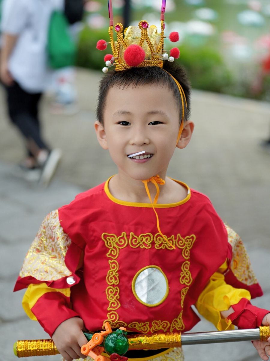 市民黃秋梅和5歲的兒子來了個“中西合璧”,分別扮演“白雪公主”和“孫悟空”,吸引了不少眼球!敖衲3月我們參加了惠州馬拉松歡樂跑,看到了不少‘顯眼包’裝扮,感覺特別有趣,孩子也很喜歡,還想再次參加類似的活動,得知惠州舉行City walk活動,我們第一時間報名,并購買了這兩套顯眼包服飾,制造‘驚喜’,娛樂一下大家!秉S秋梅說,作為一名新惠州人,她非常喜歡惠州的生活環(huán)境和城市的包容感,看到不少家庭帶著孩子參加活動,大家熱愛生活、積極健康的狀態(tài)讓她很受鼓舞。