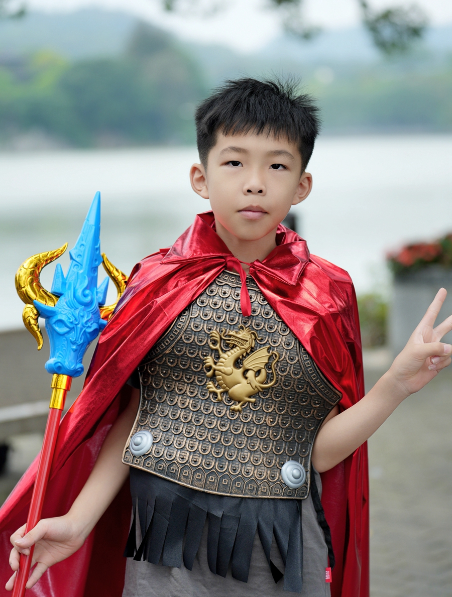 “今天的主題是尋跡東坡,我喜歡漢服,也喜歡東坡文化。我兒子特別喜歡葫蘆娃,所以把他打扮成七娃,帶他一起參加活動。”活動現(xiàn)場,身穿漢服帶著“葫蘆娃”的市民陳女士告訴記者,作為惠州人,她對家鄉(xiāng)有著特別的感情,一看到活動通知她就激情滿滿報名參加,并特地買上了兒子喜歡的葫蘆娃造型服飾。