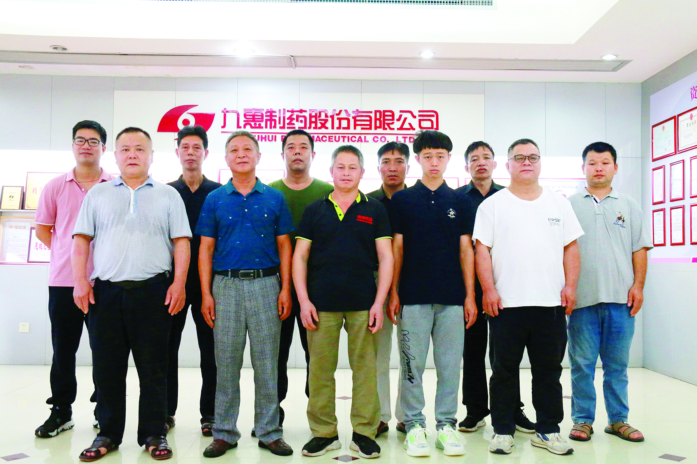惠州市九惠制藥股份有限公司丸劑車(chē)間粉碎工序班組合照。