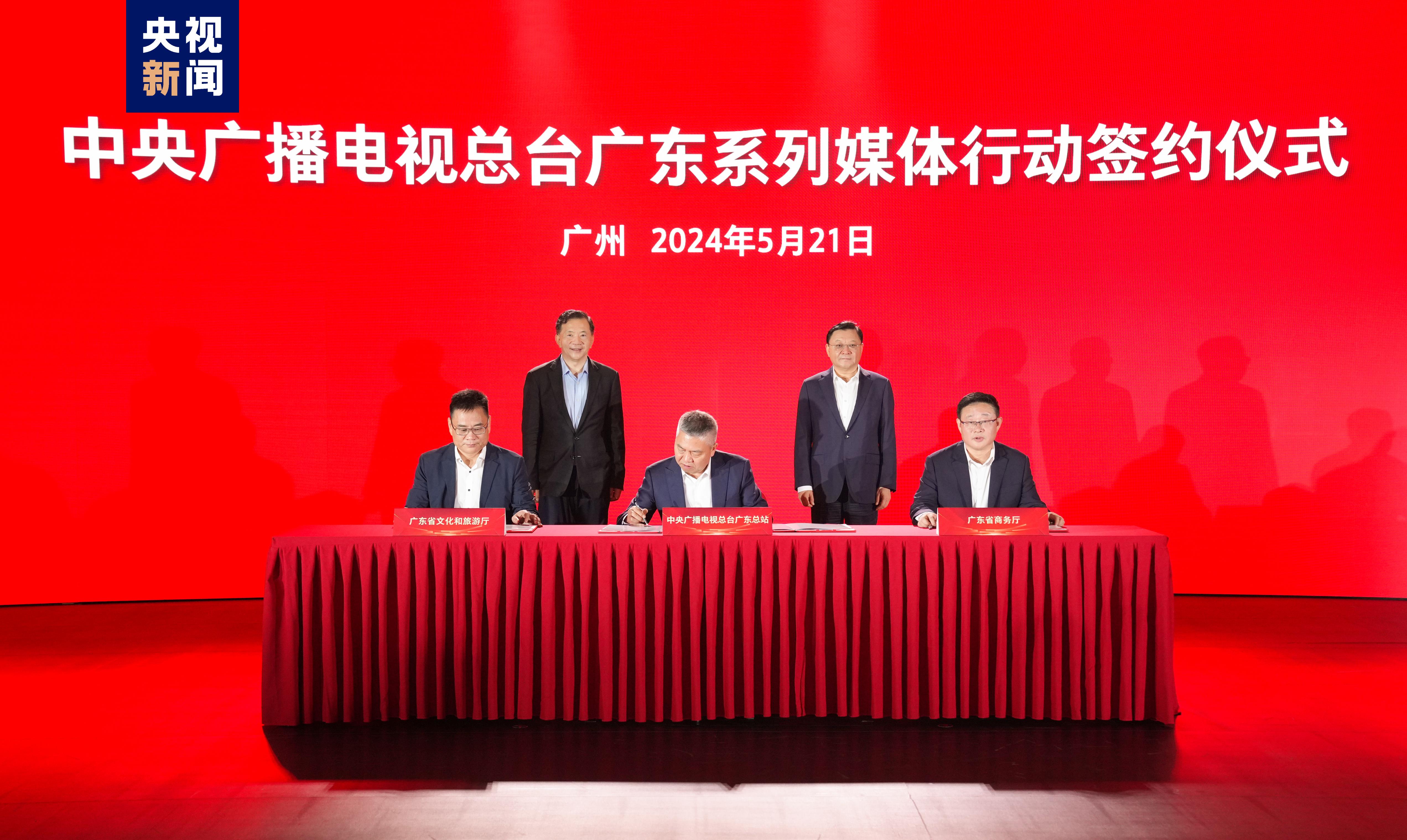 活動現場還舉行了總臺廣東總站2024重點項目簽約活動。總臺廣東總站與廣東省商務廳、廣東省文化和旅游廳簽署合作備忘錄,將共同圍繞“2024粵港澳大灣區(qū)消費季”開展深入合作,推出2024廣東龍舟季、央視新聞客戶端“國潮臻品館”廣東館等創(chuàng)新項目,為消費季聚合人氣、激發(fā)活力、創(chuàng)造空間。