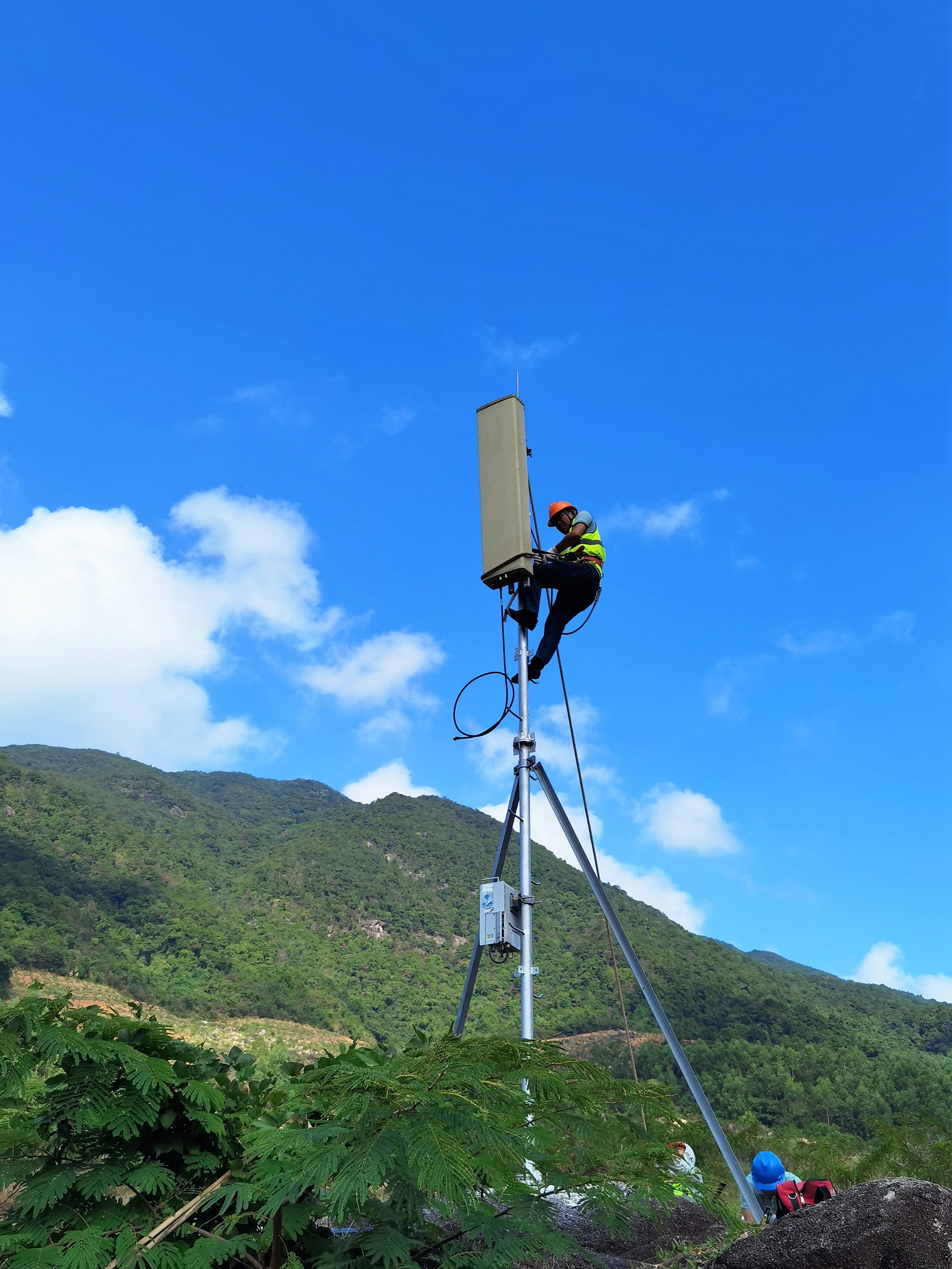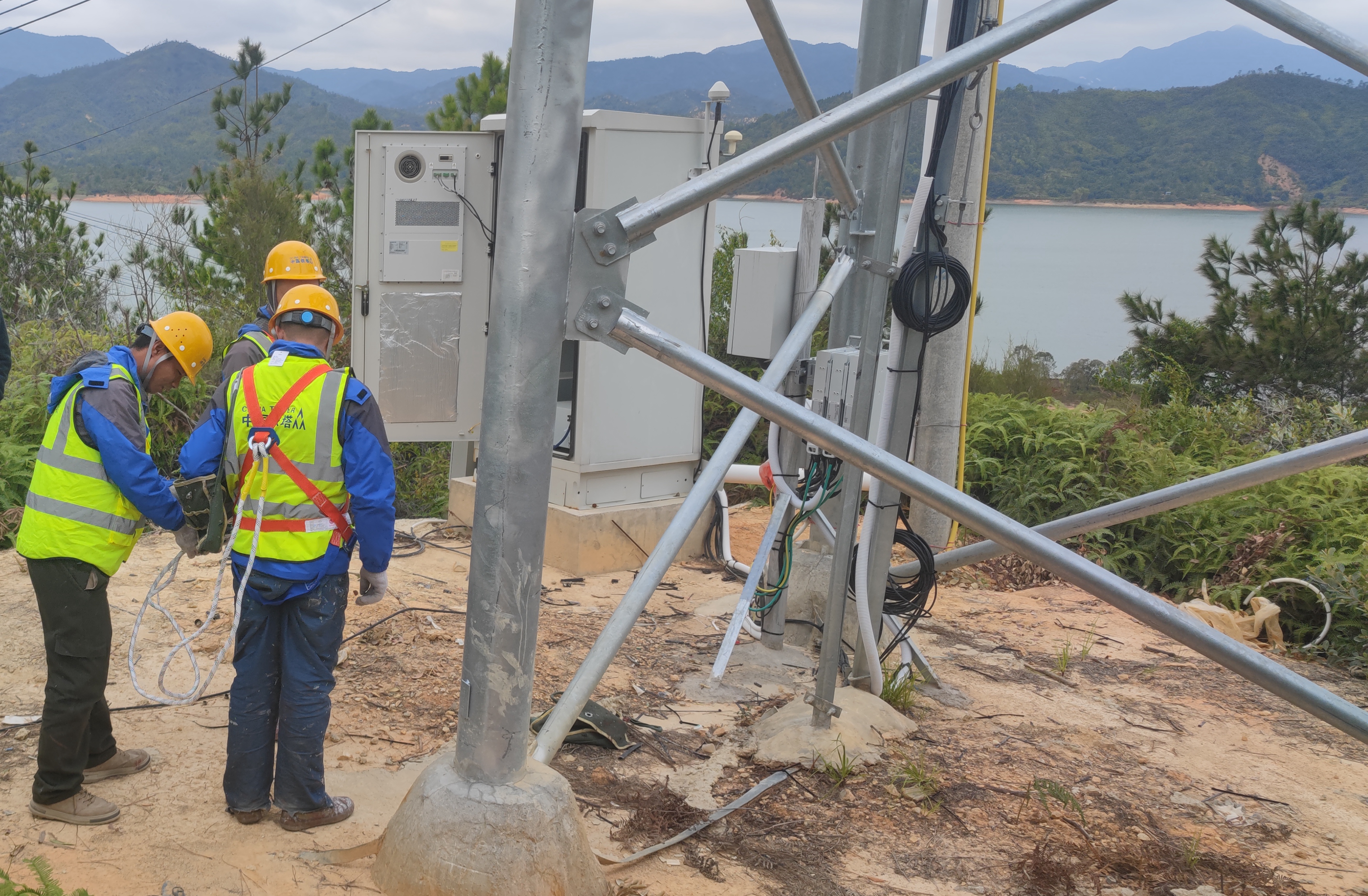 工作人員在安裝通信基站。惠州東江圖片社供圖