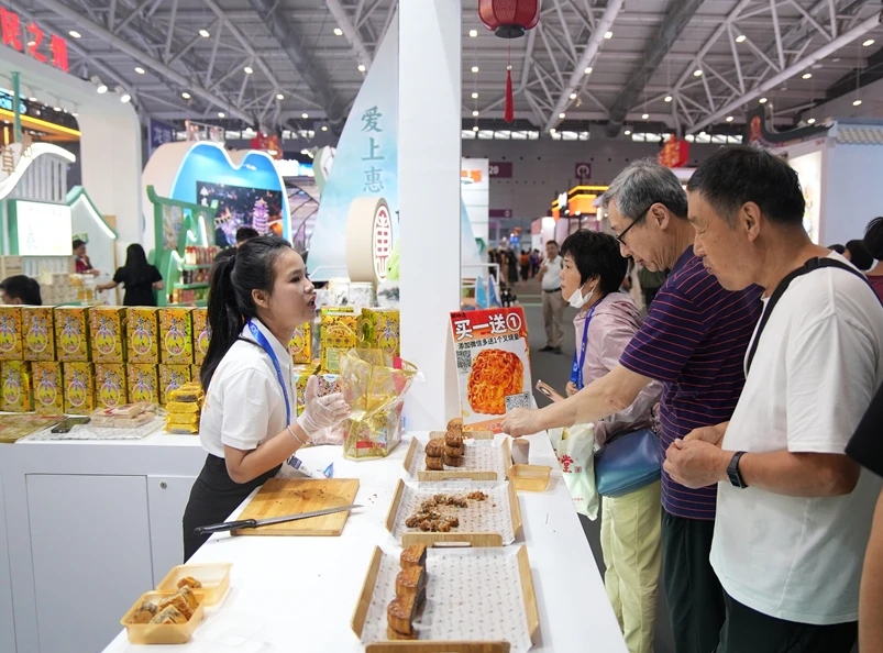 惠州館內(nèi),游客在展位前駐足品嘗。