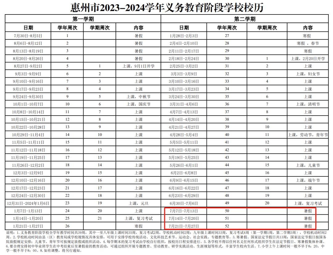 惠州市2023-2024學(xué)年義務(wù)教育階段學(xué)校校歷