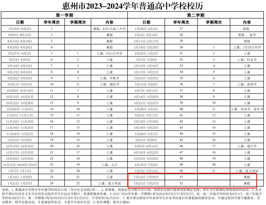 高中階段暑假從:2024年7月14日開始