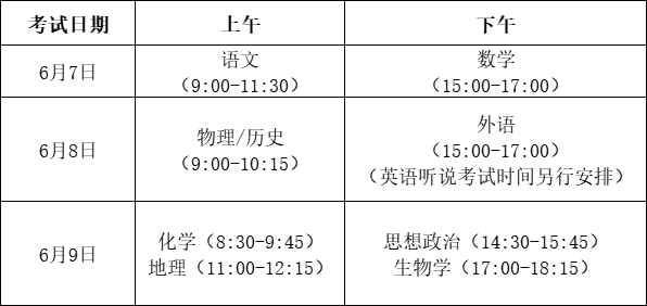 高考及中考的時間