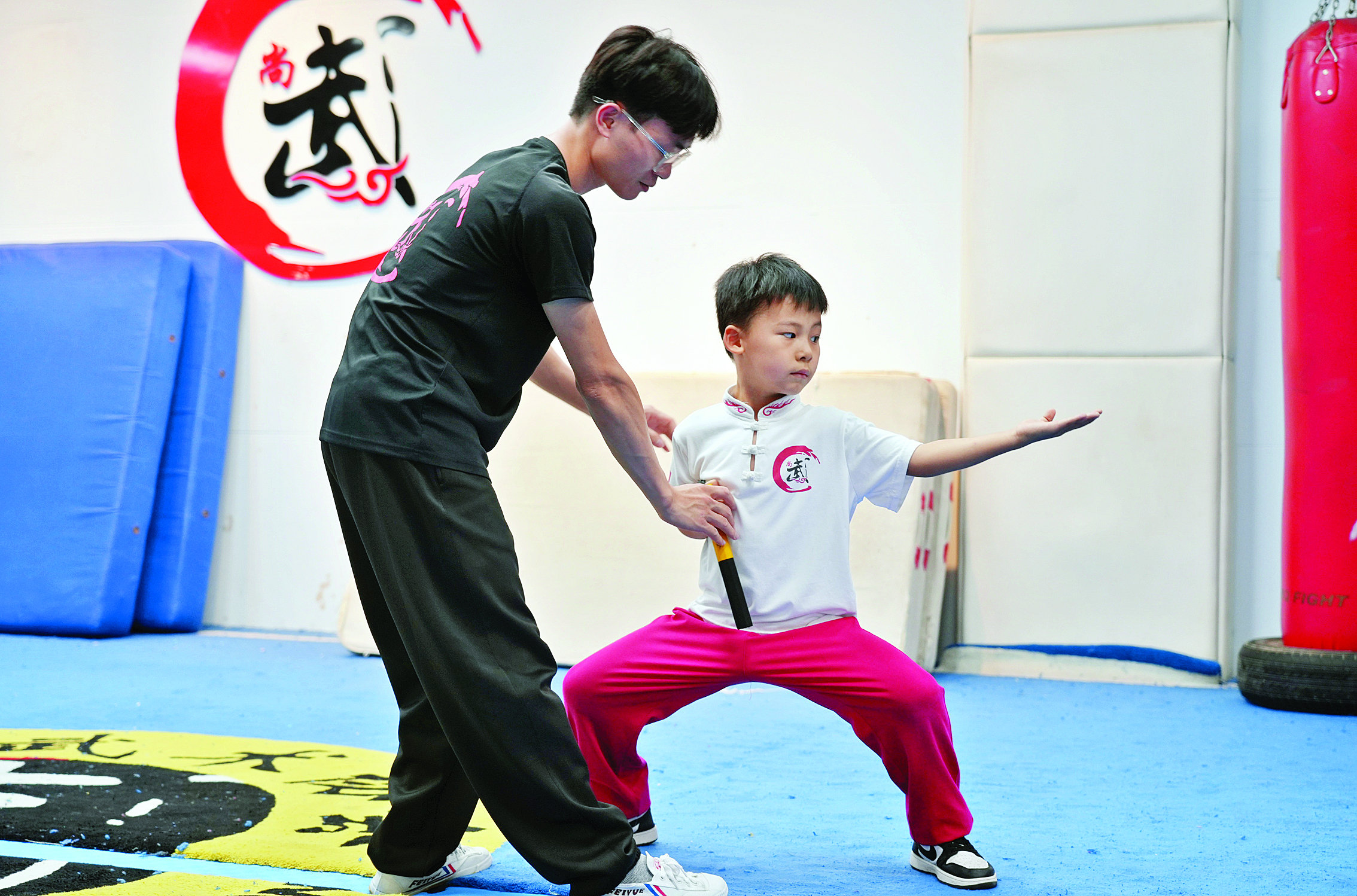 該園大班學生小尹,已經練習李家拳近一年,人變得開朗自信起來。他告訴記者,“練習武術能讓自己強壯起來。”拔萃幼兒園去年秋天引入省級非遺項目李家拳,列入武術興趣班課程,每周一節(jié)課,聘請李家拳師傅前來授課教拳,既教授武術,又講解武德,深受孩子和家長的歡迎。園長徐小霞說:“孩子們練習李家拳后,能很好地促進身心健康發(fā)展,整個人的精神面貌都很好,特別自信!币粋學期下來,孩子們能熟練地打一套少兒武術《傳奇李家拳》,配上音樂,然后上臺表演。