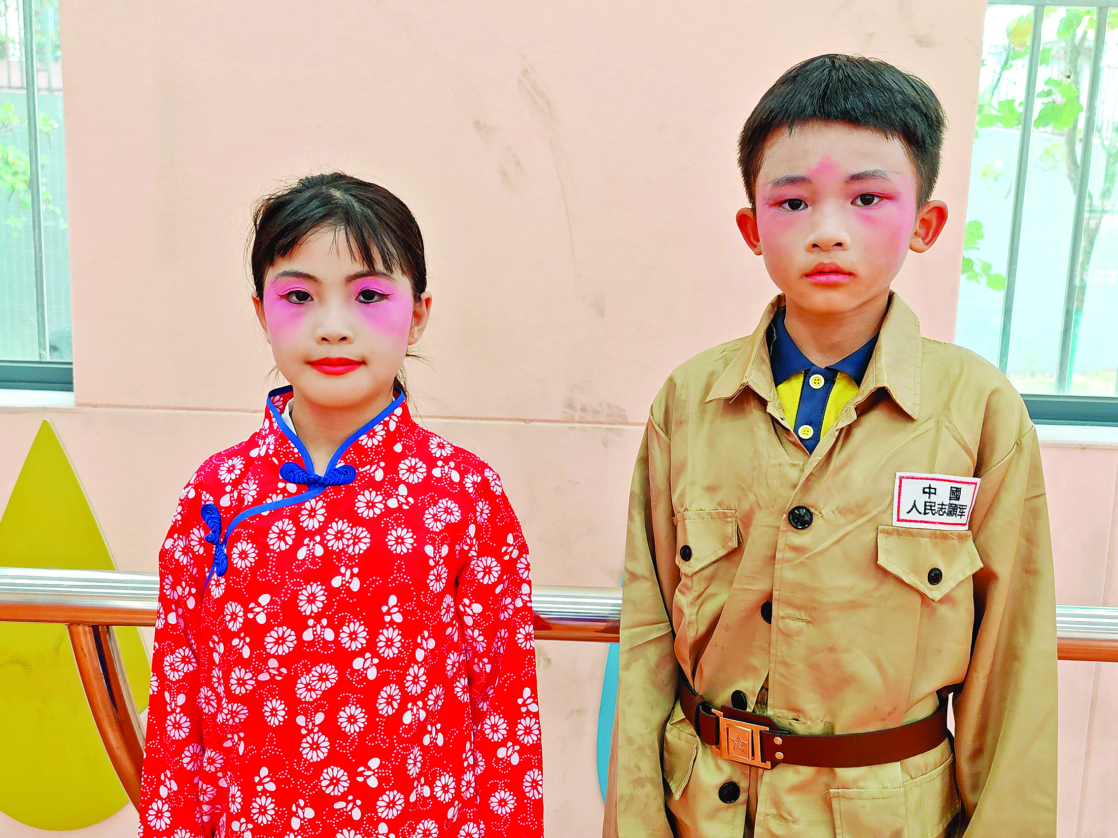 在京劇社團,像陳爔玲這樣的學生還有不少。四(1)班的曾子鈞也是其中之一。為了學習京劇,他每次總是很早到教室,學習過程認真投入,上課結束后,回家自覺復習!斑@兩個孩子有天賦,再加上肯吃苦,勤練習,雖然學習京劇才兩年時間,但他們的表現很不錯!被葜菔欣细刹烤﹦f會工作人員任桂芹豎起大拇指點贊。