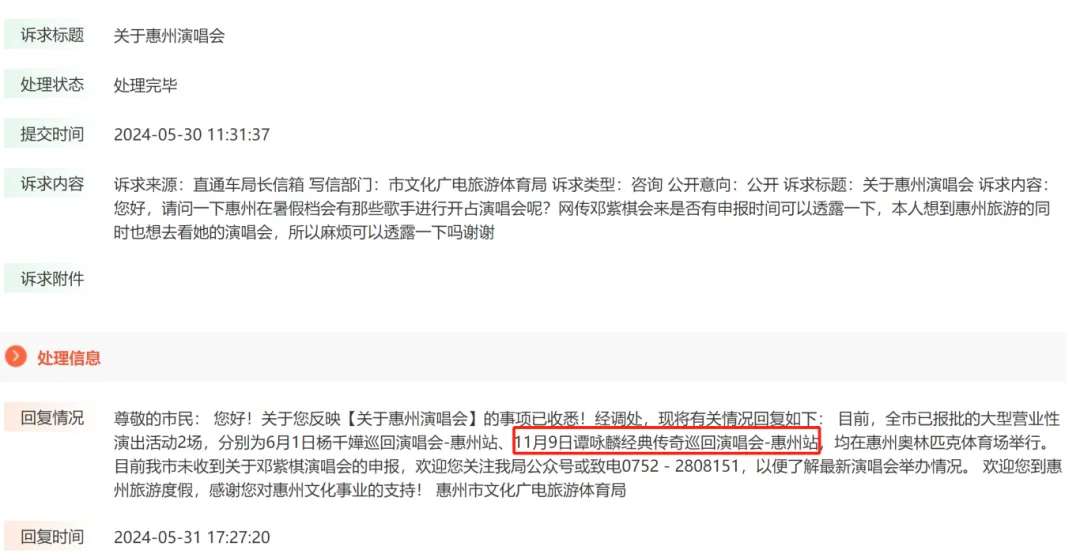 相關(guān)部門(mén)在惠州民意直通車(chē)回復(fù)網(wǎng)友