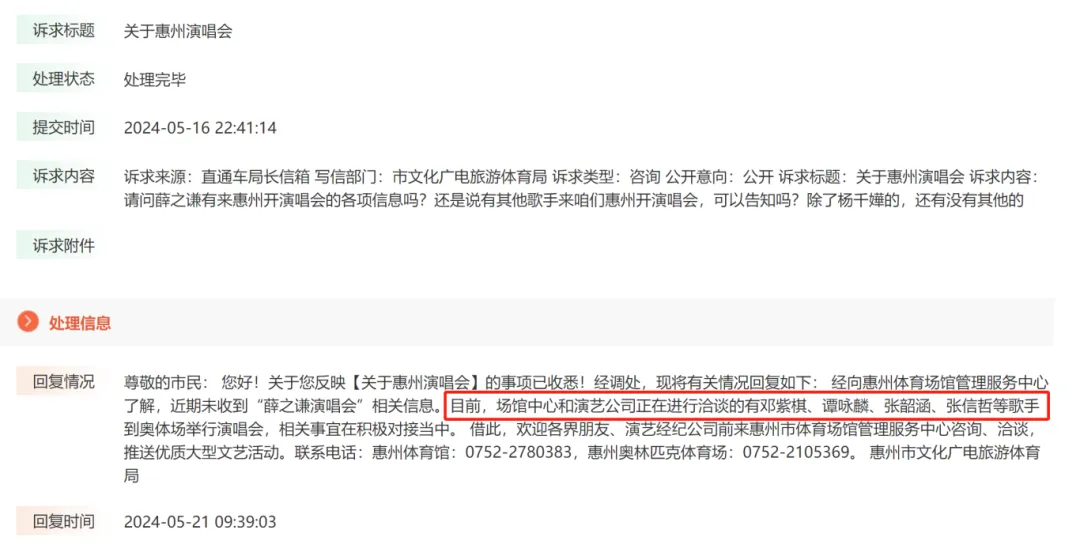 惠州還沒(méi)有收到歌手薛之謙的演唱會(huì)申請(qǐng)