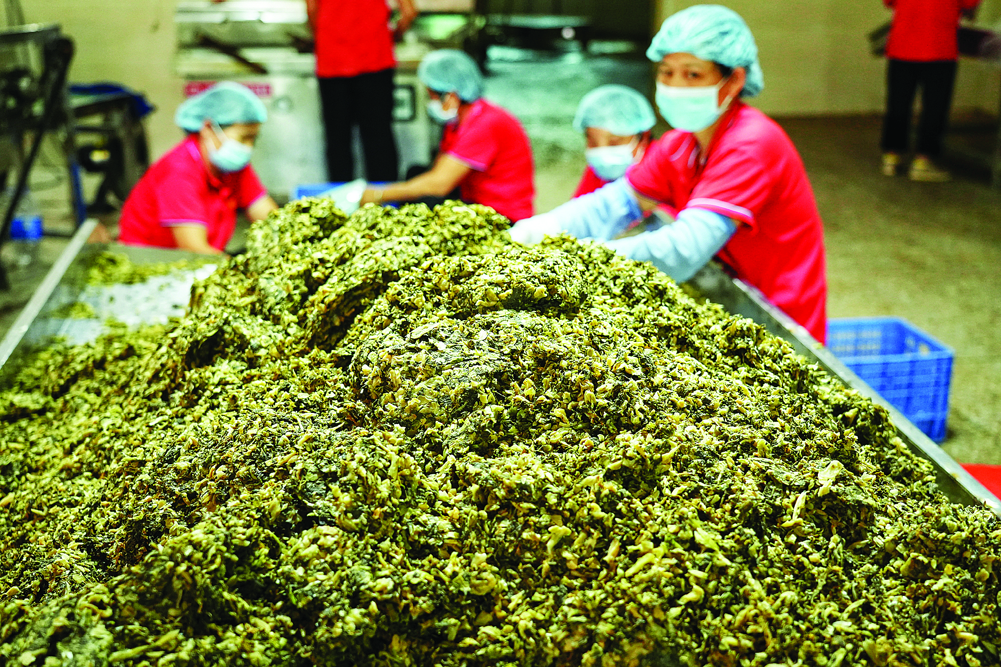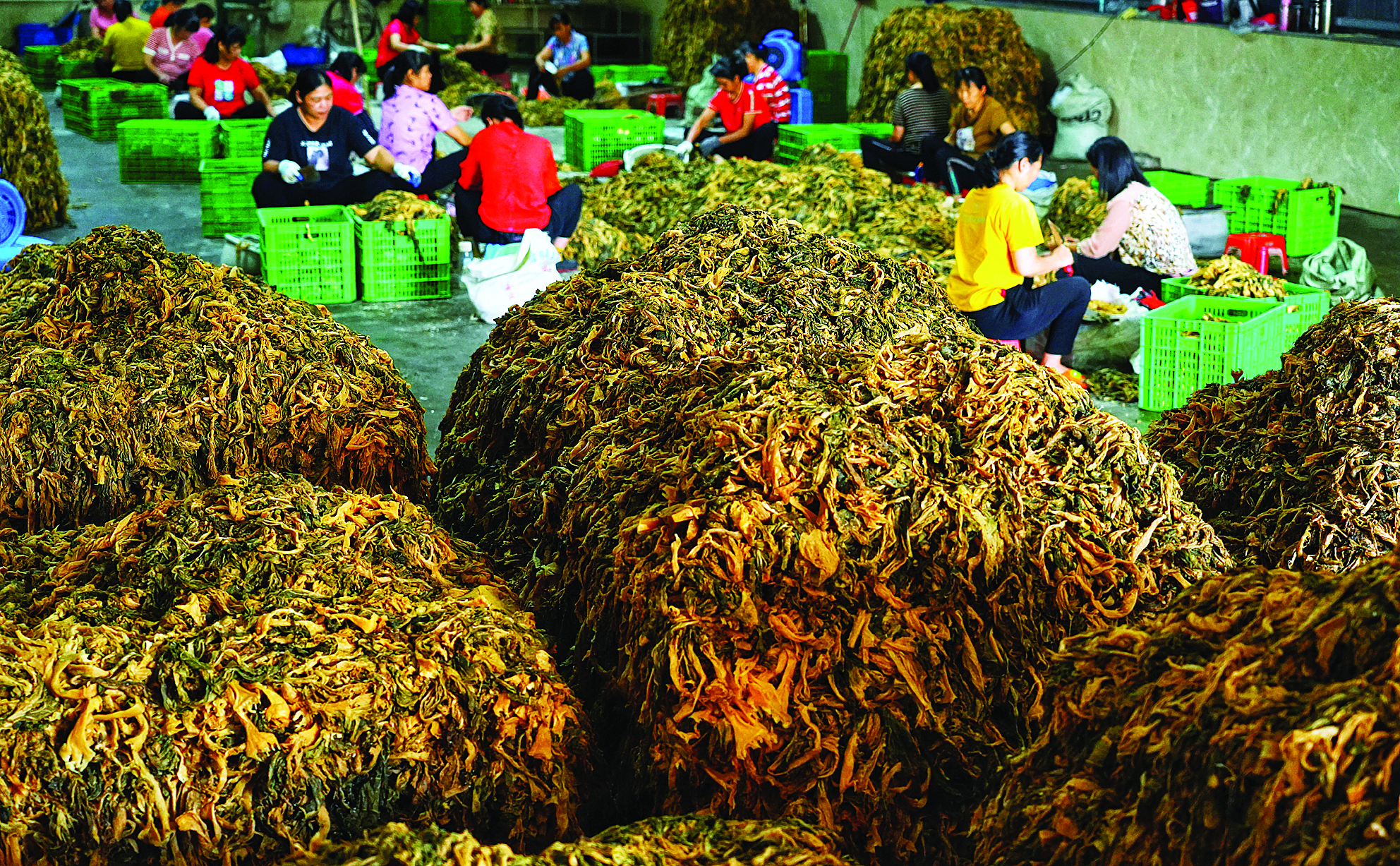 廣東譚喜農(nóng)業(yè)科技有限公司生產(chǎn)車間內(nèi),工人在加工梅菜。