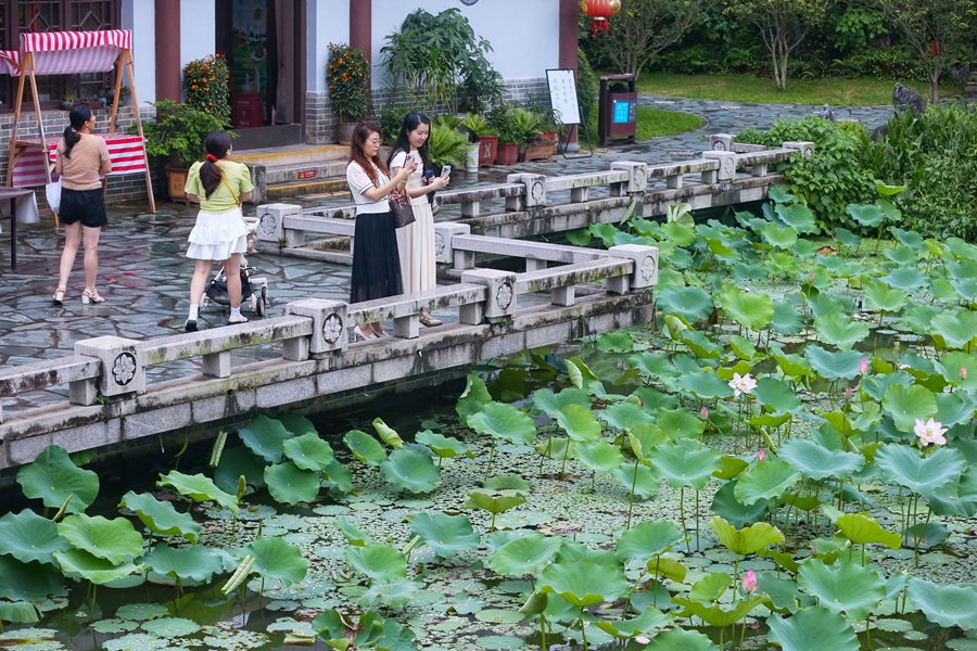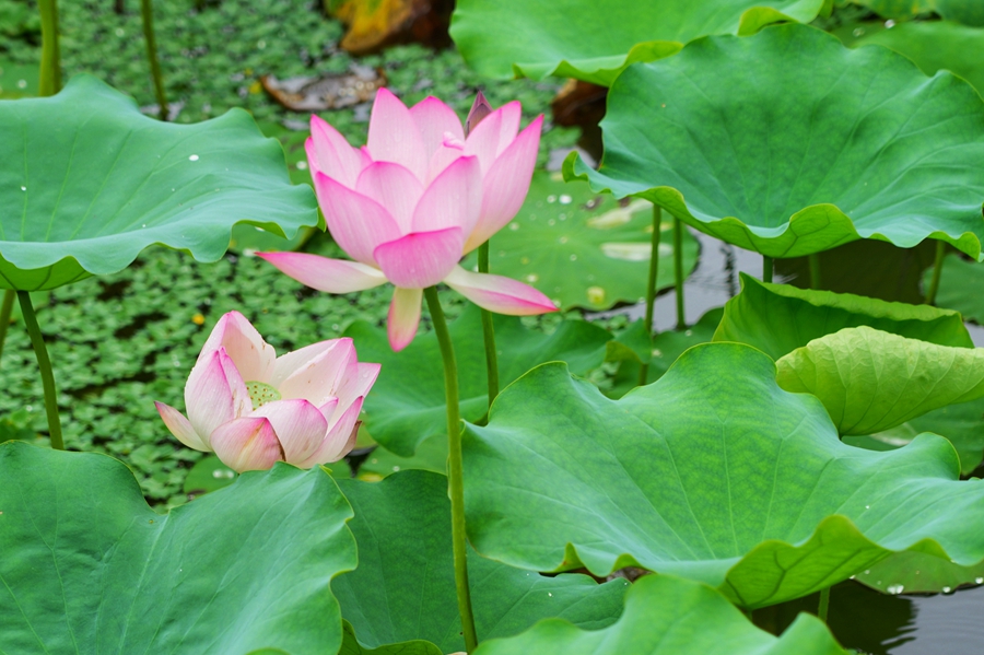 綠意盎然間點綴著嬌艷的荷花。