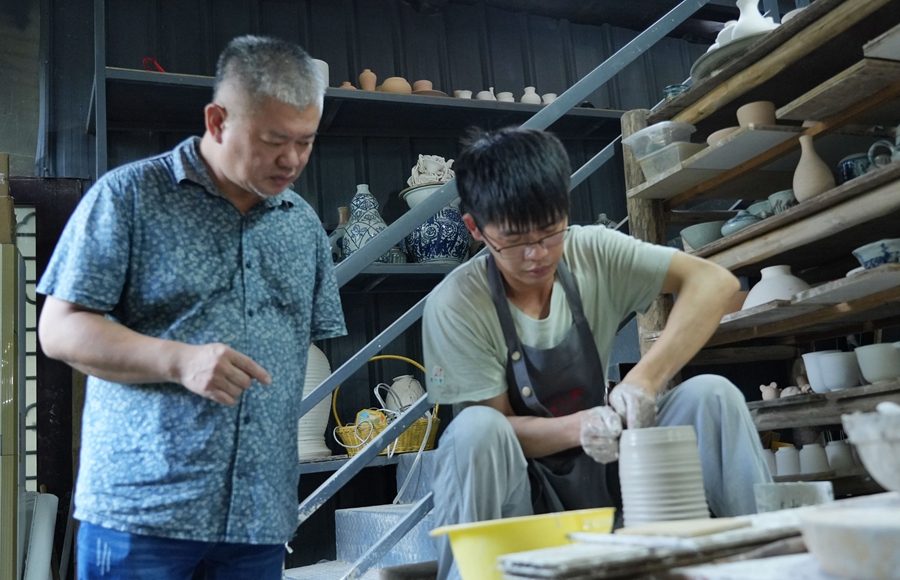 在陶瓷藝術(shù)路上,許嗣達(dá)師從東平窯青白瓷傳統(tǒng)手工技藝傳承人、東平窯陶瓷藝術(shù)研究院院長(zhǎng)余小倫。在老師的指導(dǎo)下,許嗣達(dá)更加深入地學(xué)習(xí),參與陶瓷創(chuàng)作過程,并對(duì)陶瓷產(chǎn)業(yè)鏈有了更深的認(rèn)識(shí)。