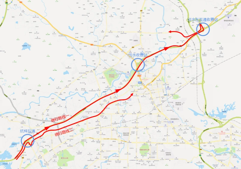 G15沈海高速淡水收費(fèi)站相關(guān)匝道臨時(shí)封閉期間繞行示意圖。