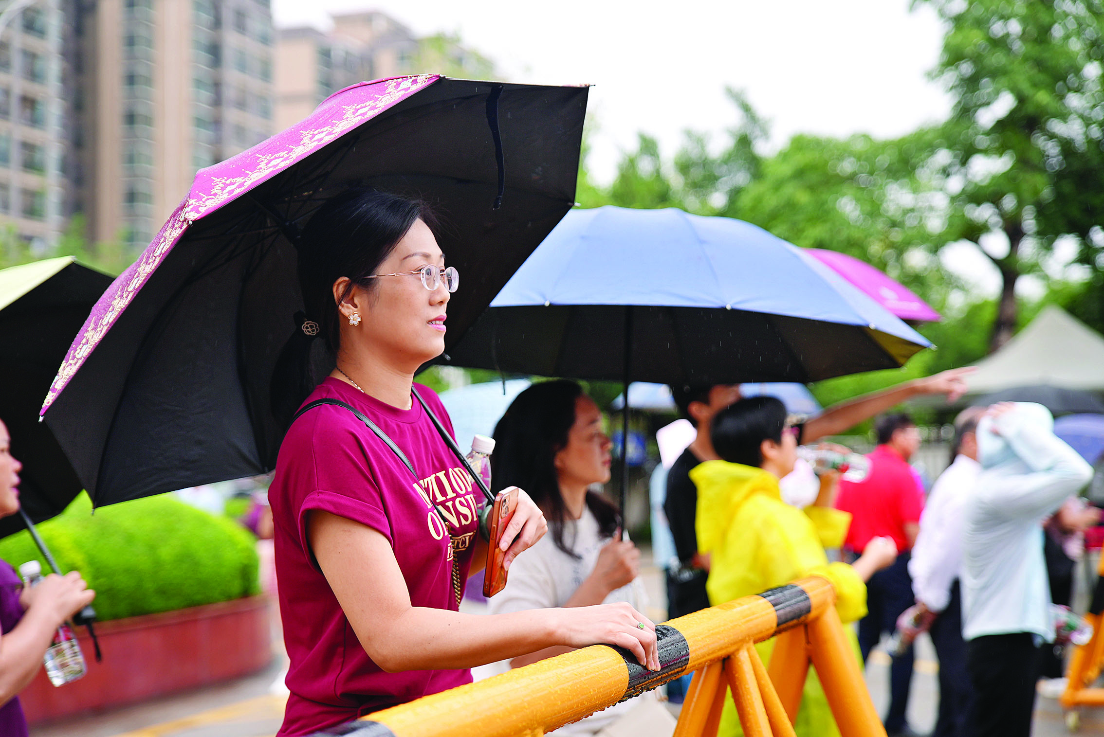 家長們在考場外等待。