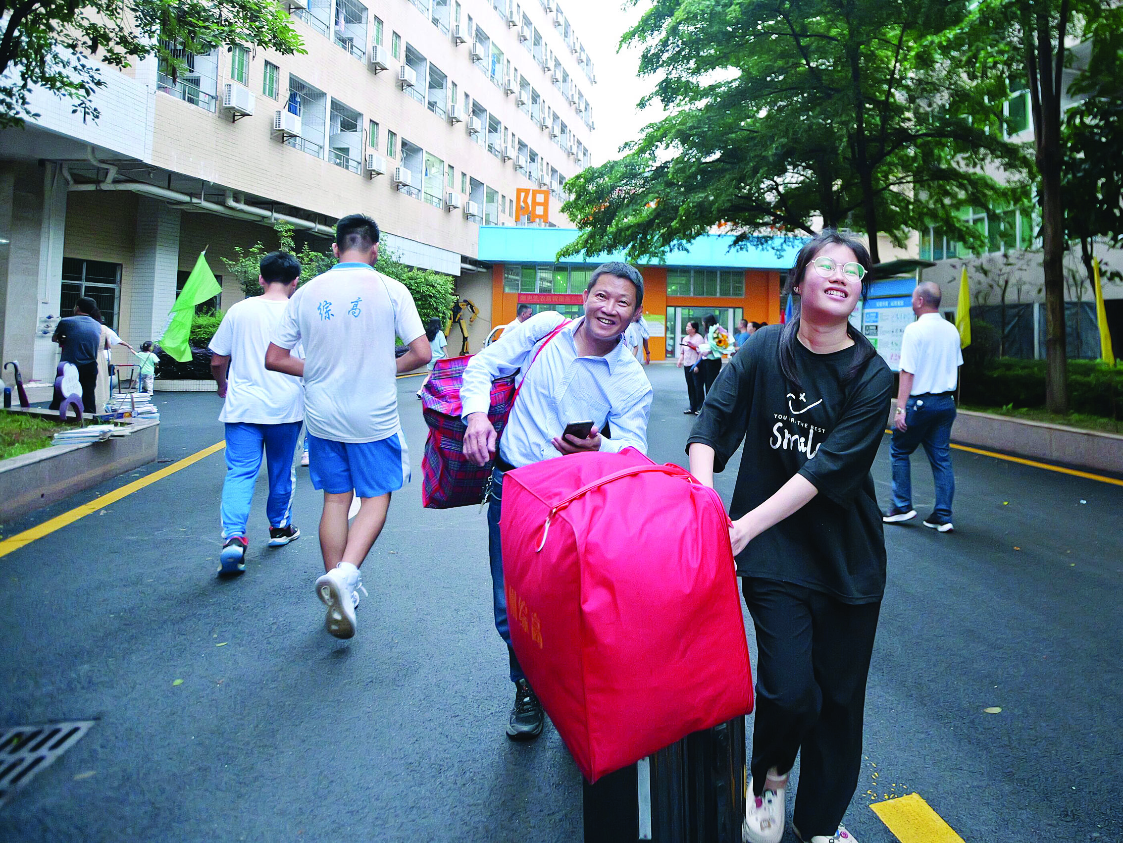 考場外,家長們拿著鮮花翹首以盼,迎接孩子們出來?紙鰞(nèi),或歡笑、或淚水,每一個瞬間都是他們成長的見證?忌鷤兓氐秸n室和宿舍,或忙碌收拾,或駐足留戀,回憶三年的點滴……