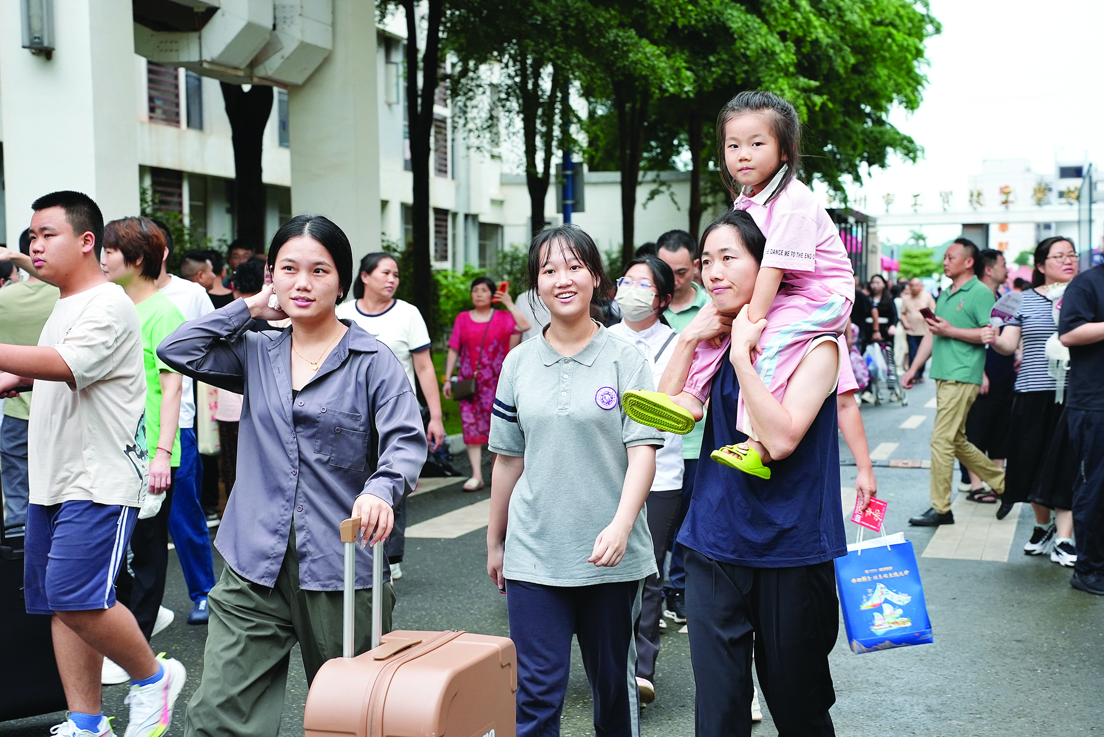 考完試了,考生和家人一臉輕松。