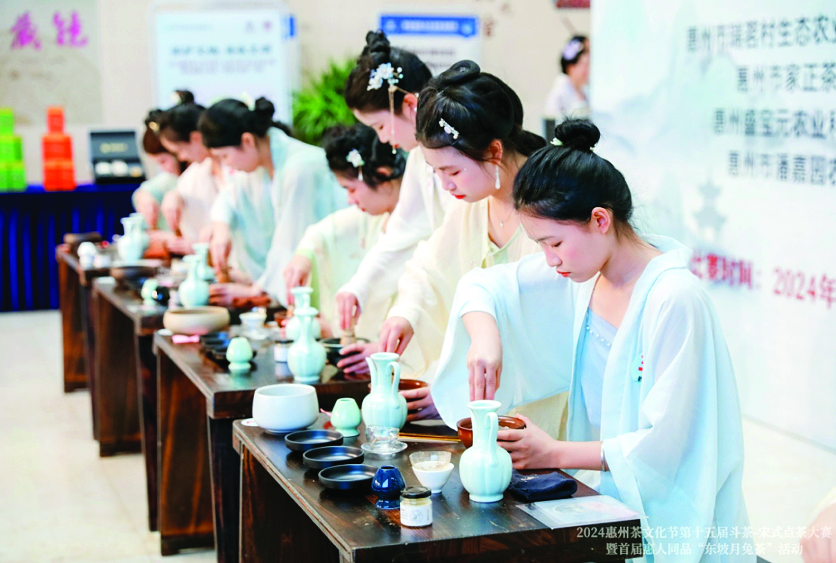 日前,“保護(hù)文物 傳承文明”2024惠州茶文化節(jié)第十五屆斗茶——宋式點(diǎn)茶大賽暨首屆惠人同品“東坡月兔茶”活動(dòng)在惠州博物館一樓大堂正式啟動(dòng)。比賽項(xiàng)目囊括茶百戲中的茶畫(huà)、漏影春、水丹青三項(xiàng)以及七湯點(diǎn)茶,現(xiàn)場(chǎng)茶香四溢,選手們各展神通,用精湛的技藝為觀賽的市民游客帶來(lái)一場(chǎng)精彩的表演。