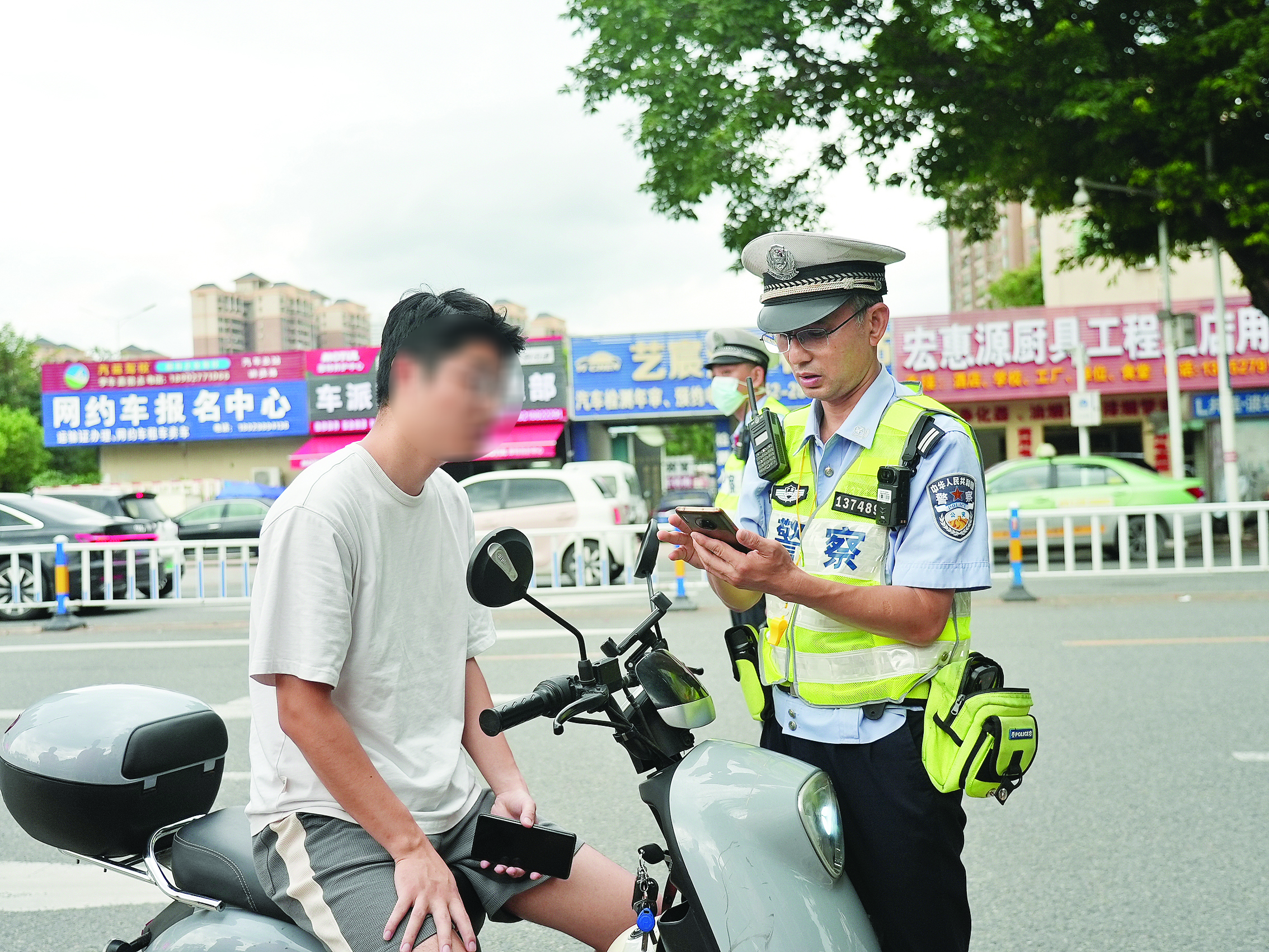 “我去前面辦點事,急急忙忙忘了戴頭盔!6月12日下午5時許,一男子騎電動車未佩戴安全頭盔,經(jīng)過市區(qū)三環(huán)南路與南岸路交會路口時,被執(zhí)勤交警查處。當日,一場“摩電”大兵團整治行動在惠城區(qū)火熱開展。