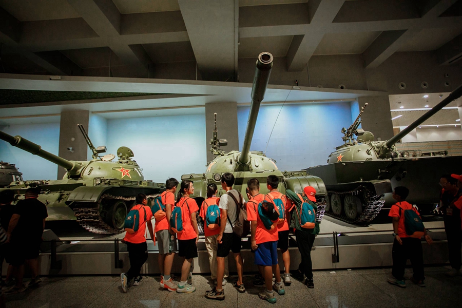 去年暑假,小惠同學(xué)研學(xué)營的孩子們在軍事博物館參觀軍事裝備;葜輺|江圖片社供圖