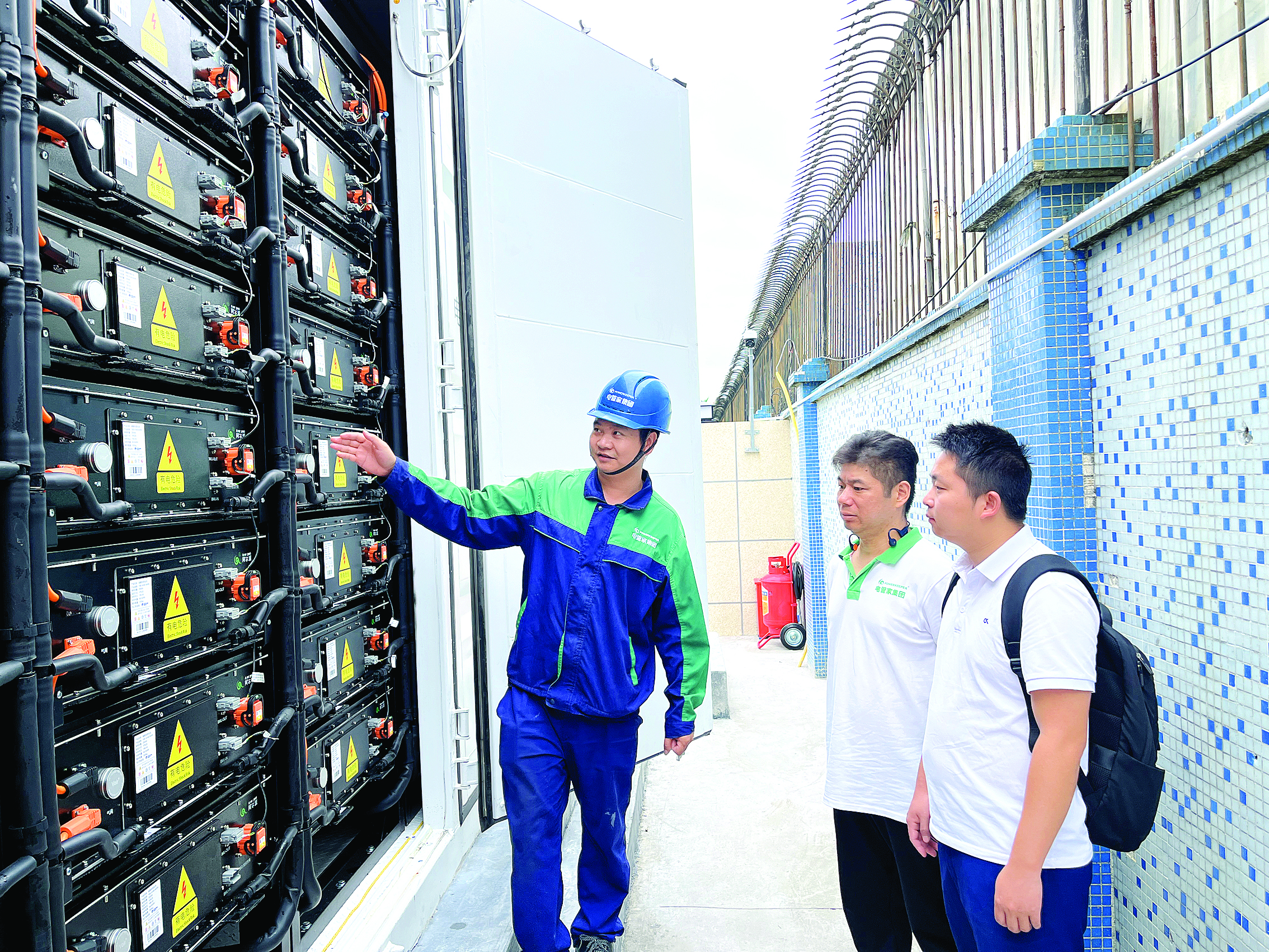 工作人員介紹眾儲格林精密儲能電站。惠州日報記者謝菁菁 攝