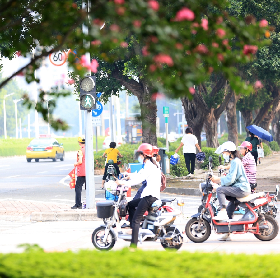 惠州大多數(shù)電動自行車駕駛?cè)舜黝^盔文明出行;葜輺|江圖片社供圖