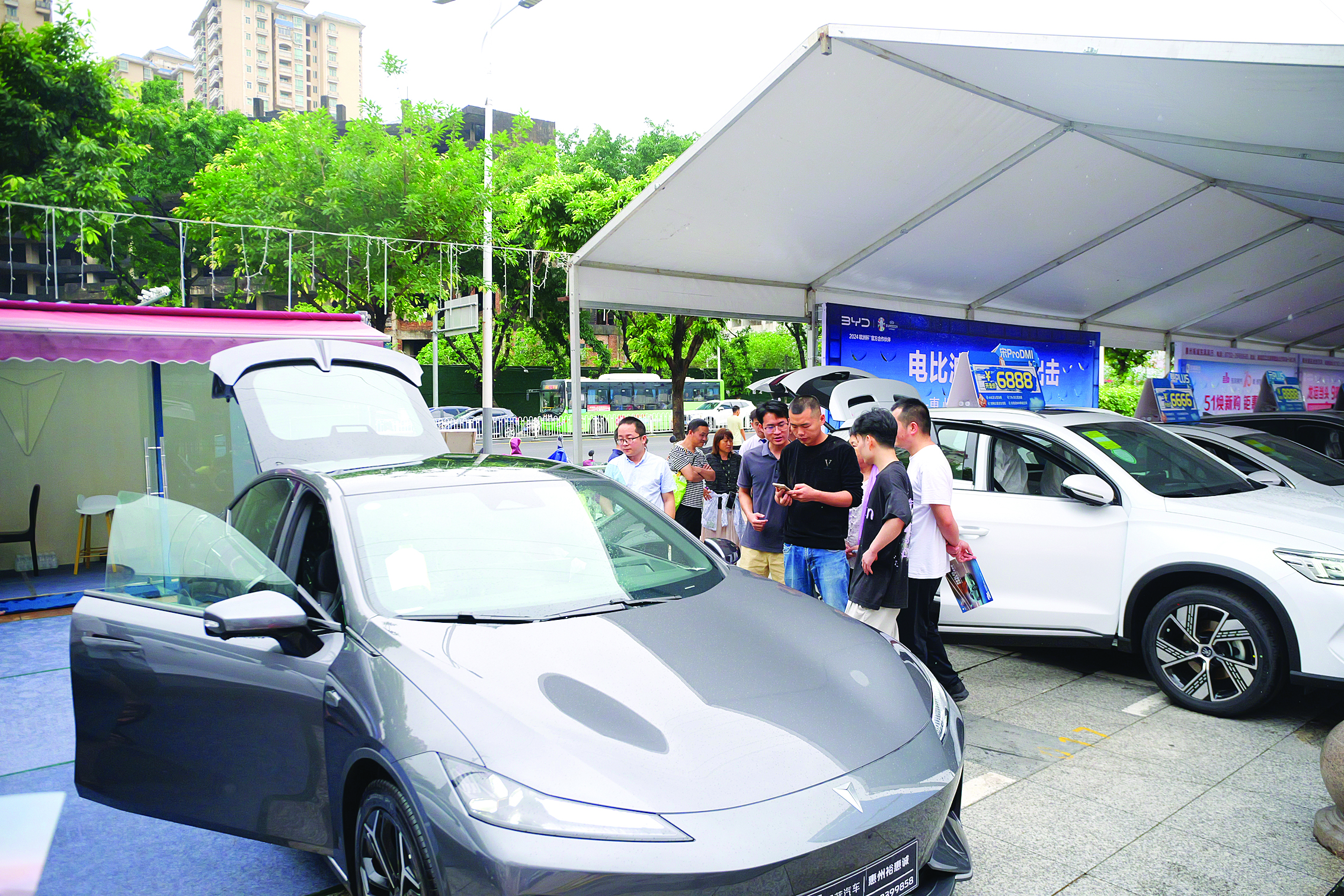 我市以舊換新政策刺激汽車市場(chǎng)釋放消費(fèi)潛力。這是市民在展區(qū)看車;葜輺|江圖片社供圖