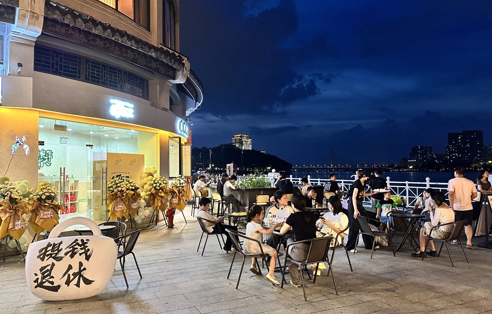 來到0752水東街店,首先映入眼簾的就是開闊的東江江面,以及寬敞的店前廣場!斑@個江面太壯觀了,景觀層次也很豐富,喝著0752的茶,再看著對岸的高樓大廈,以及舒適的江邊綠道,還真有點上海外灘或漢口江灘的感覺!睂τ0752水東街店的選址,市民鵬程連連點贊。