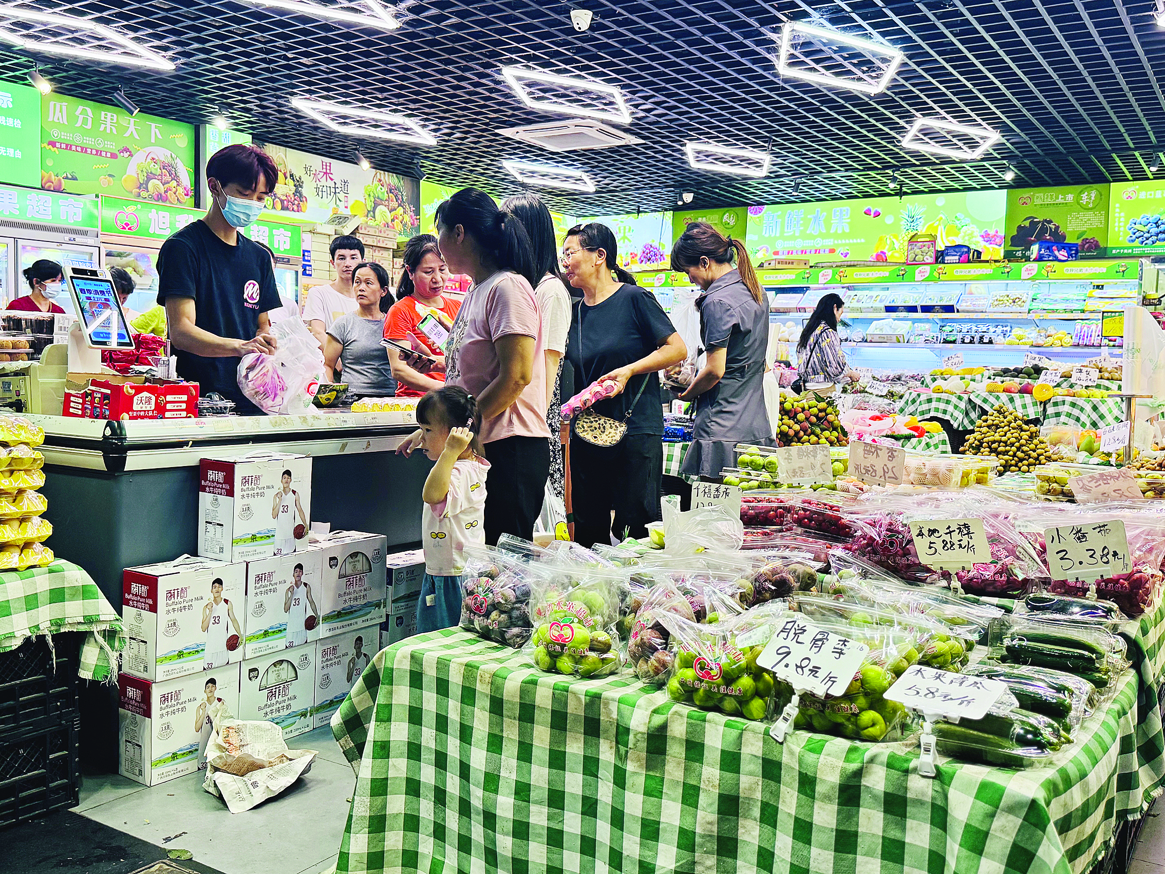 西瓜等應(yīng)季水果售價下降,不少市民前往水果店、商超選購水果。