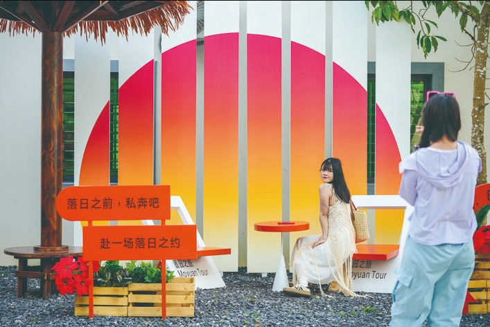 傳統(tǒng)村落煥發(fā)活力新生。沒(méi)有都市的喧鬧紛擾,古韻與各類(lèi)潮元素在村子里碰撞結(jié)合,氛圍感滿(mǎn)滿(mǎn)。無(wú)論是乘坐小火車(chē)逛稻田、果園摘鮮果、古樹(shù)莊園親子探險(xiǎn)、約攝影搭子在文案墻打卡、在營(yíng)地小館品茶嘆咖啡,還是坐在小橋流水的河邊賞花發(fā)呆……墨園村總有一種方式可以療愈你。
