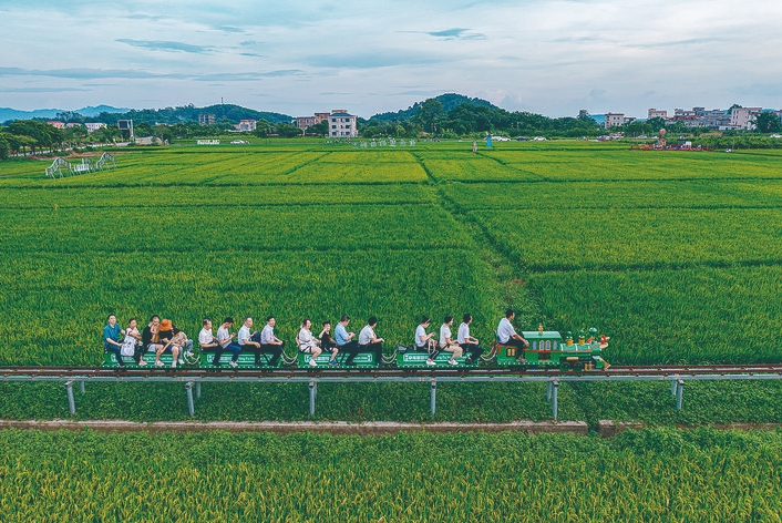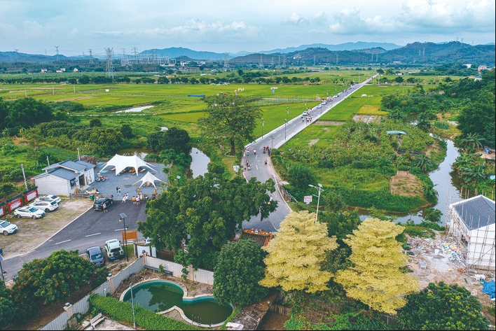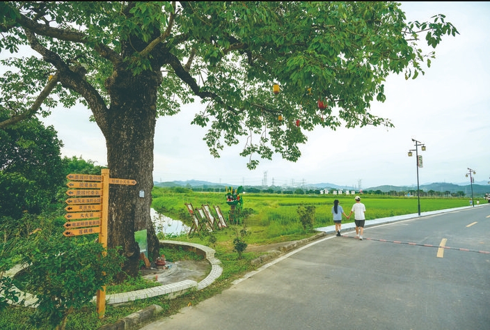 哐當(dāng)哐當(dāng)……遠(yuǎn)方兩列小火車(chē)滿(mǎn)載游客從稻田里的軌道駛來(lái),東江上吹來(lái)的江風(fēng)裹著春泥稻花香在身邊縈繞,這畫(huà)面不是宮崎駿的動(dòng)畫(huà),而是咱們惠州人熟悉的墨園村。這個(gè)顏值頗高的“網(wǎng)紅”村,位于惠州市惠城區(qū)橫瀝鎮(zhèn)東北約6公里處的東江東岸,東、西、北三面環(huán)山,村域面積約2.6平方公里。墨園村是省“百千萬(wàn)工程”首批典型村,結(jié)合村情村貌運(yùn)營(yíng)提升后的傳統(tǒng)民居錯(cuò)落有致,田野清新美麗、游玩項(xiàng)目豐富多彩,吸引了眾多游客前來(lái)打卡游玩。