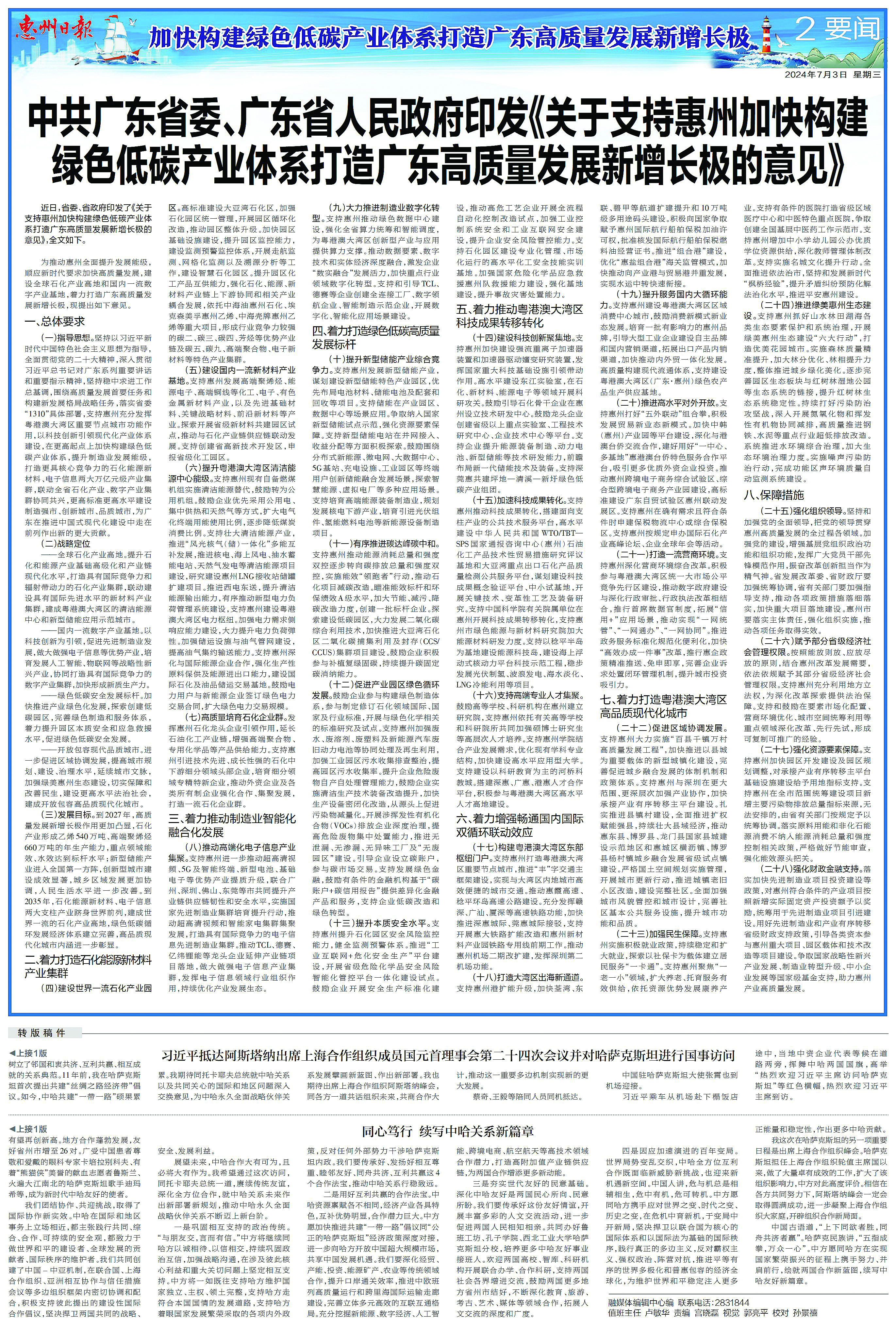 省委省政府出臺《意見》支持惠州加快構建綠色低碳產業(yè)體系
