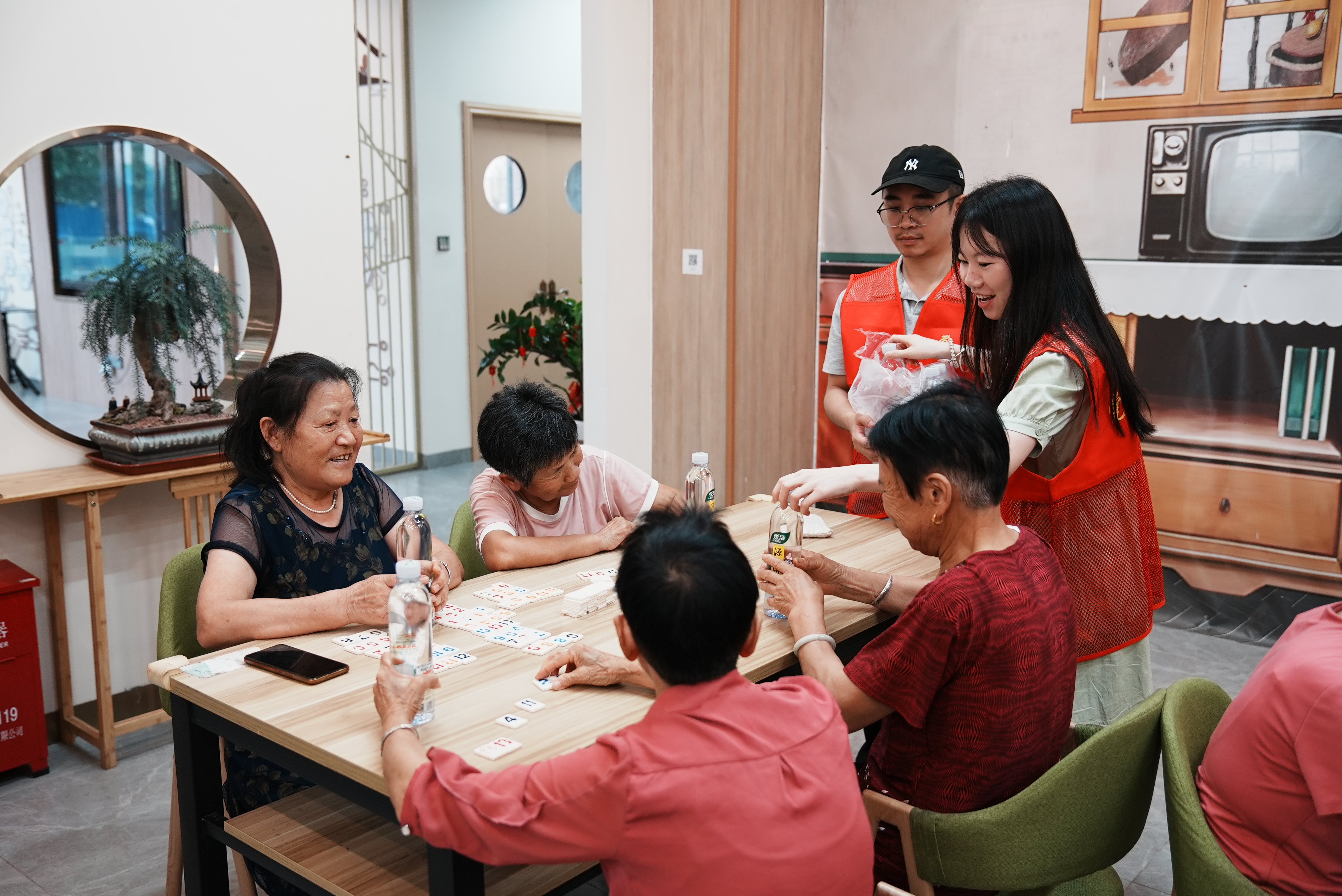 “回家”黨員為長者之家的老人們送清涼;葜萑請笥浾吡_劍業(yè) 攝