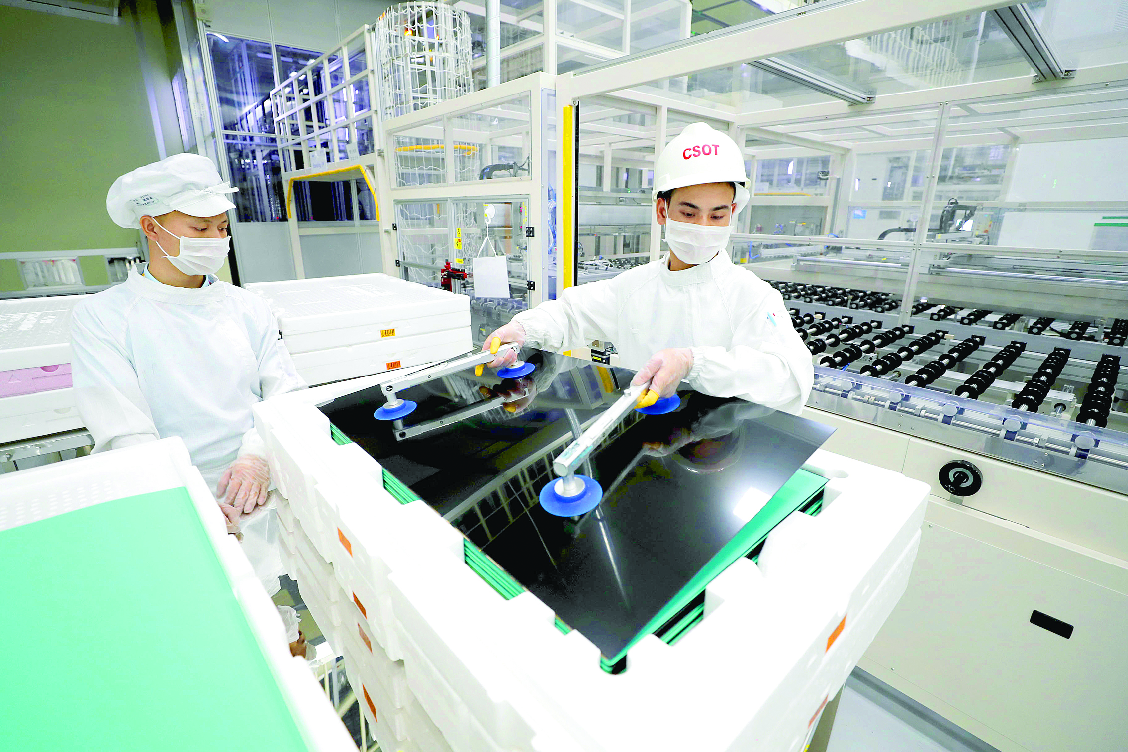 工人在華星光電生產(chǎn)車間作業(yè)。