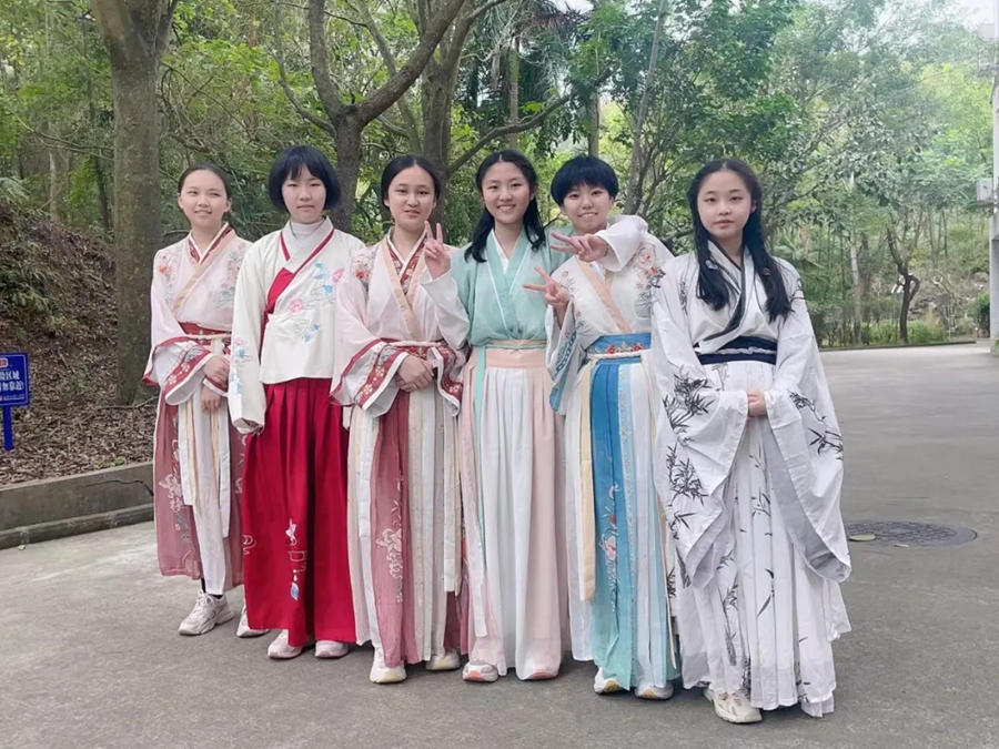 校園生活豐富,學(xué)生們穿上漢服參加課本劇比賽。