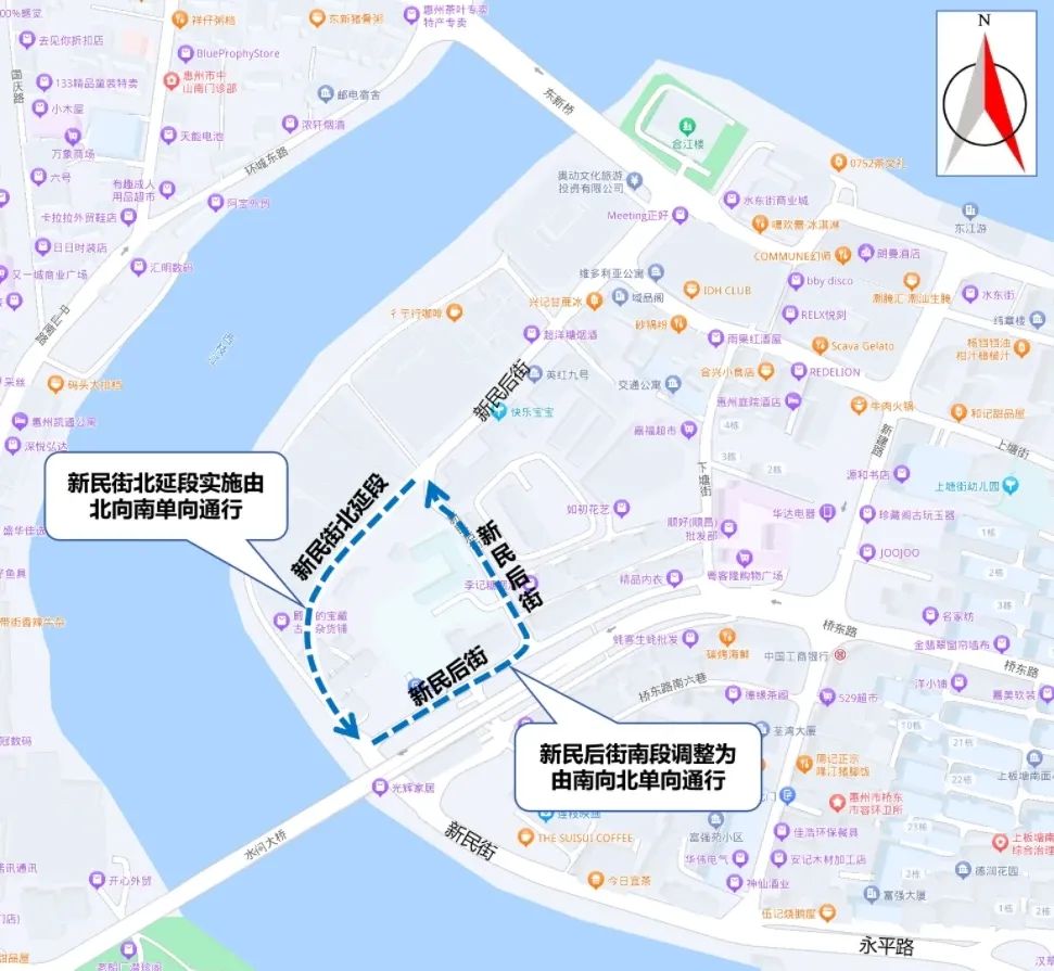 02 惠城橋東新民街北延段、新民后街南段實(shí)施單向通行